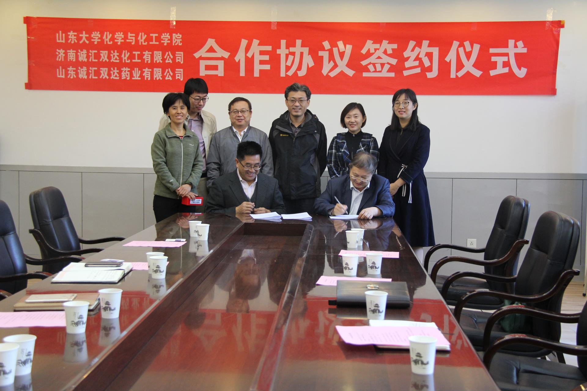 签约仪式上,经理郝京诚教授与董事长于东海先生分别代表双方签订了协议。根据协议,济南诚汇双达化工有限公司将连续五年每年出资10万元,在化公司建立“诚汇双达奖助学金“,同时双方也将在科学研究、社会实践等多方面展开合作交流。
