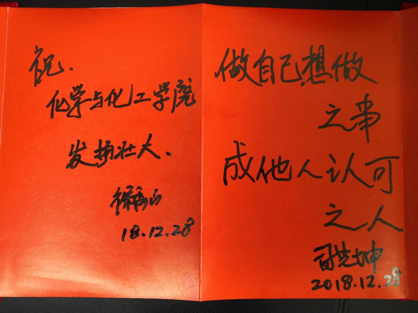 最后,郝京诚为两位老师赠送了公司礼物,两位老师在留言簿上签字留言。