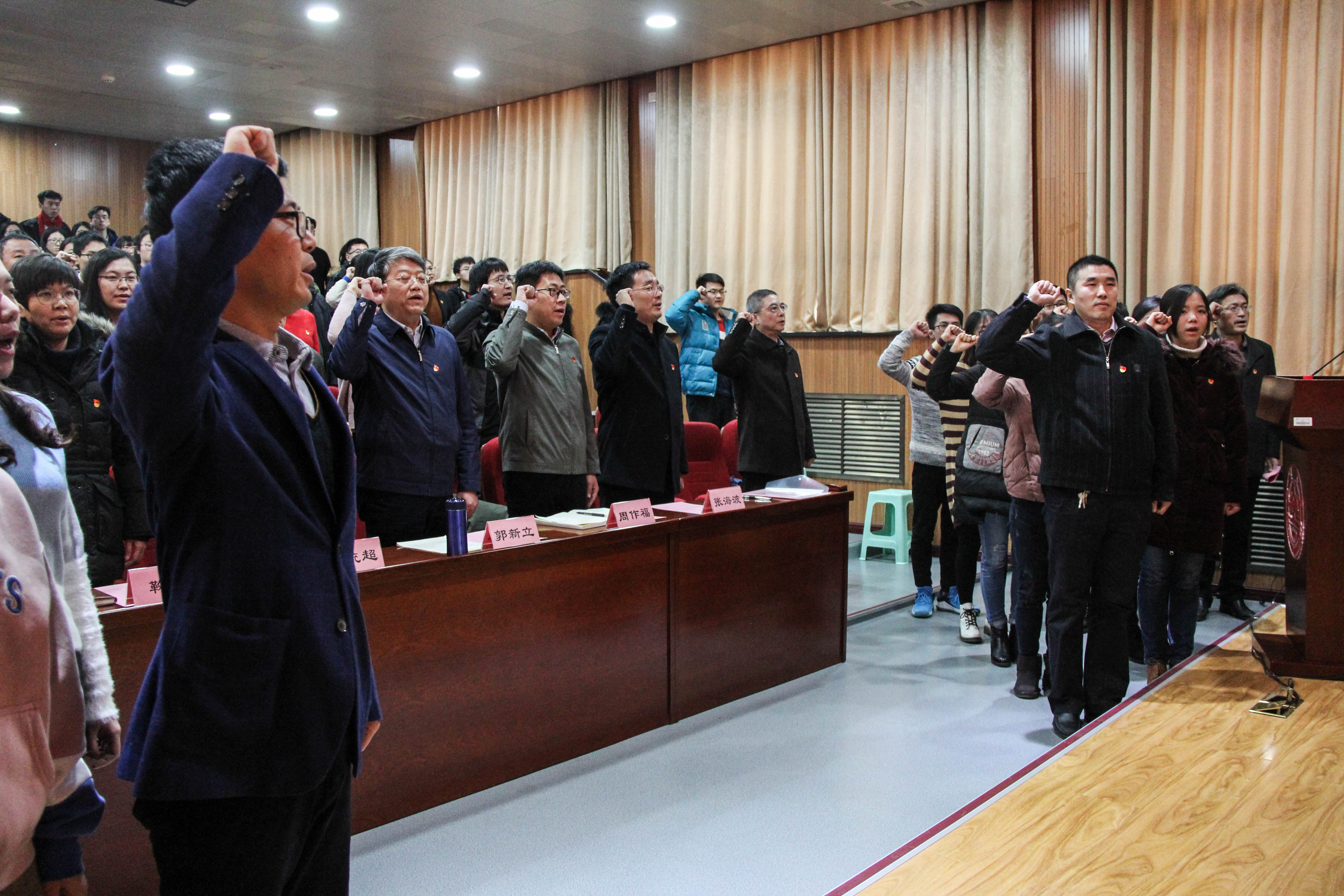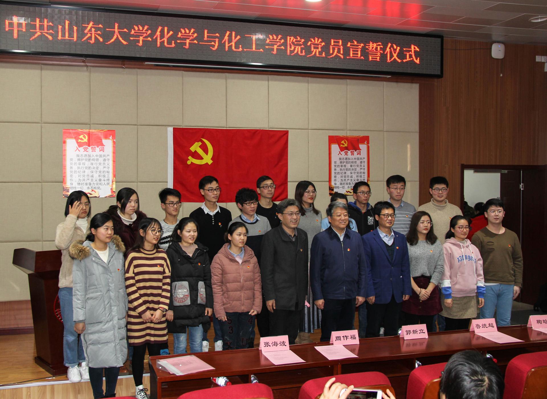 仪式上,郭新立代表公司党委向新加入党组织的19名同志表示祝贺。他对大家提了三点希望。第一,要自觉加强学习,增强党性修养。对新党员来说,真正做到从思想入党,就要靠不断学习,要深入学习习近平新时代中国特色社会主义思想和党的十九大精神,加强党章党规党纪学习,加强革命传统学习。第二,要铭记党员身份,强化党员意识。关于党员身份,有三个层面的理解,党员的思想身份、政治身份、组织身份。要不断强化理想信念意识、强化政治意识、强化组织意识。第三,要投身改革发展,充分发挥党员先锋模范作用。大家要深刻认识到,党员不仅仅是荣誉和称号,更多的是责任和担当。在公司“双一流”建设的新征程中,需要每一名党员能够在学习工作生活中,做到平常时候看得出来、关键时刻站得出来、危急关头豁得出来,要做爱国奉献、建功立业的表率,做教书育人、科研创新的表率,做勤奋学习、立德成才的表率。郭新立表示,今天的入党宣誓仪式后,大家就开始拥有了自己专属的“政治生日”。“政治生日”不仅是一个日期,更重要的是这意味着党员对于自己终生信仰的抉择。希望大家永远牢记入党誓词,经常加以对照,不忘初心、牢记使命,以追求卓越、只争朝夕的信念和决心,努力为实现青春梦、山大梦和中国梦而不懈奋斗。