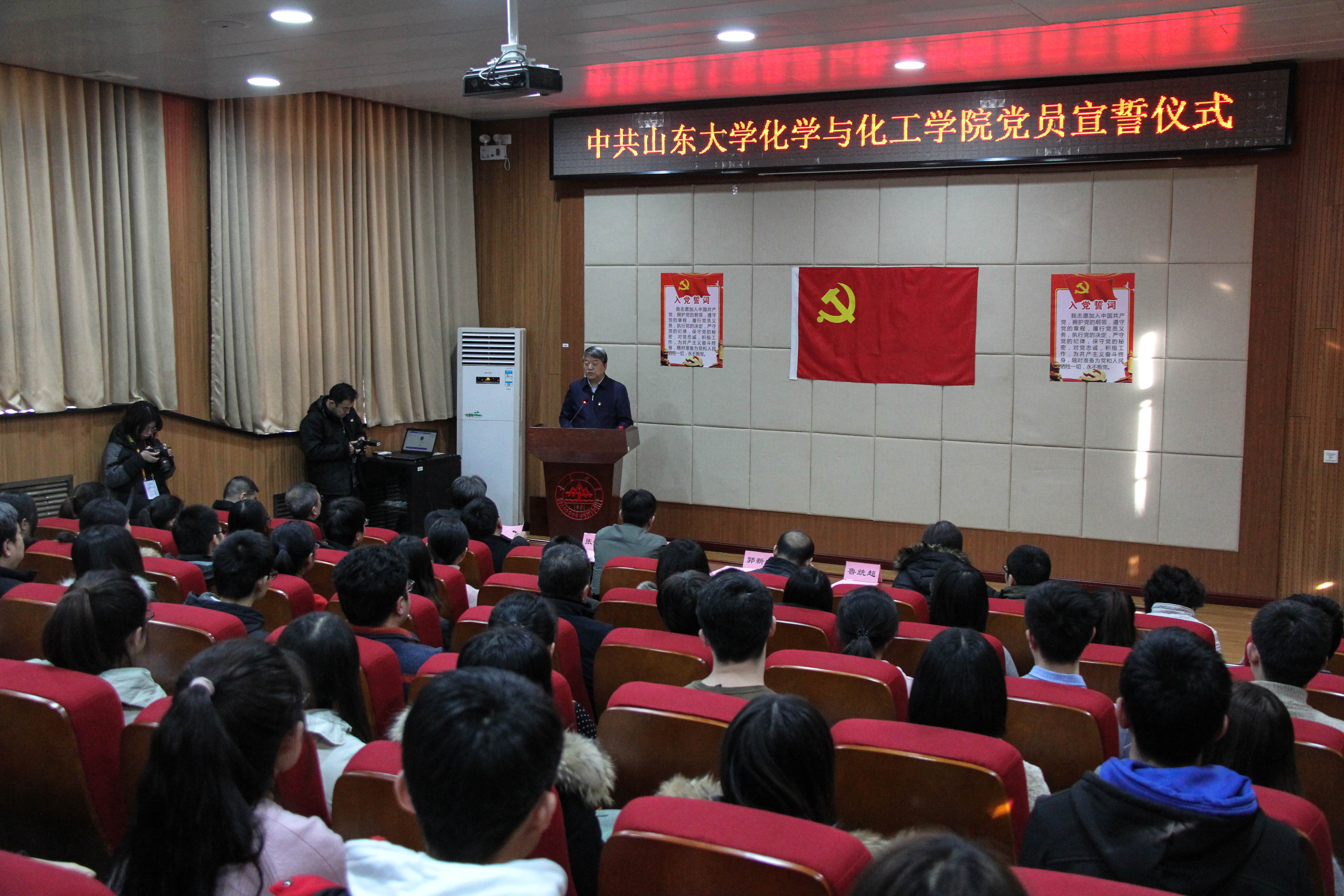 宣誓结束后,物化所所长牛林作为老党员代表表达了祝贺和期望。新党员代表、泰山学者张进涛教授回忆了求学、留学经历,表明了投身党的事业的决心,表示一定把入党誓词“终生铭记,身体力行”,树立坚定的共产主义理想信念,牢记责任、使命,充分发挥党员的先锋模范作用。党委组织部,宣传部,学工部、武装部,研工部等有关部门负责人;公司新入党的预备党员、教工和员工党支部书记、老党员代表120多人参加仪式。