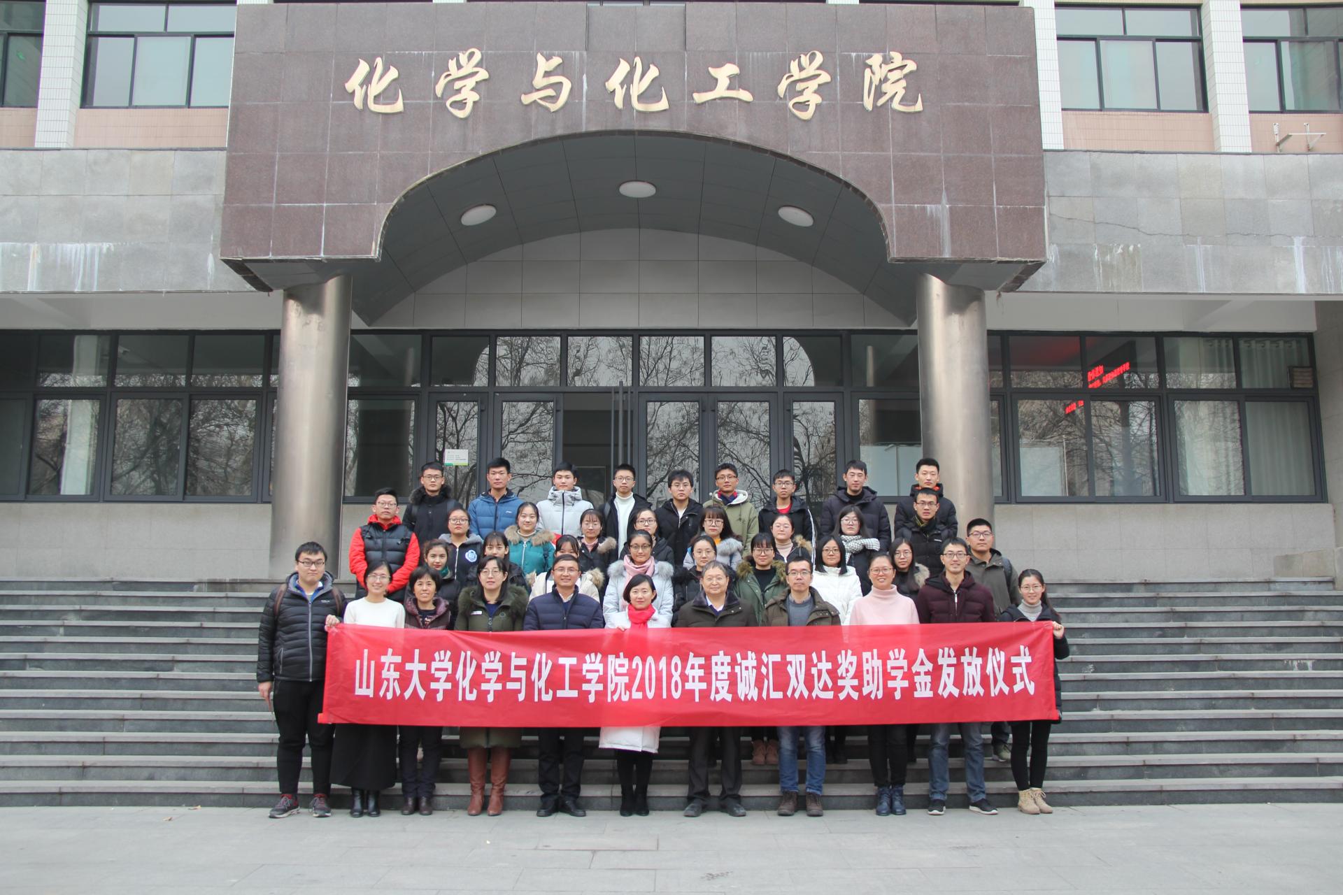济南诚汇双达化工有限公司成立于2002年,是国内专业生产、销售医药原料药、中间体、高端精细化工产品的高新技术企业;2014年整合现有技术、资源,引入战略合作者,在德州平原建设了具有国际标准的山东诚汇双达药业,占地200亩,总投资4.5亿元。2018年10月,诚汇双达与化公司签订合作协议,将连续五年每年出资10万元,设立“诚汇双达奖助学金“,奖励品学兼优的员工;同时双方也将在科学研究、社会实践等多方面展开合作交流。本年度,公司共有7名研究生、15名本科生获得诚汇双达奖学金,9名本科生获得诚汇双达助学金。
