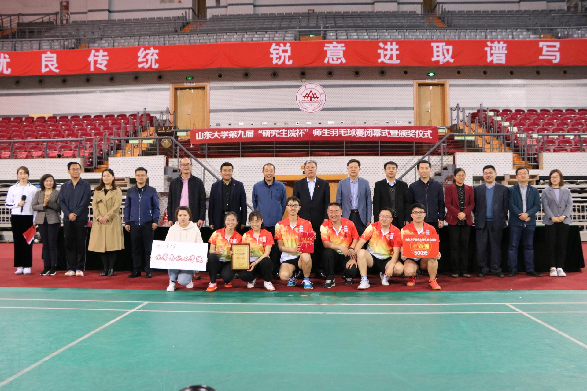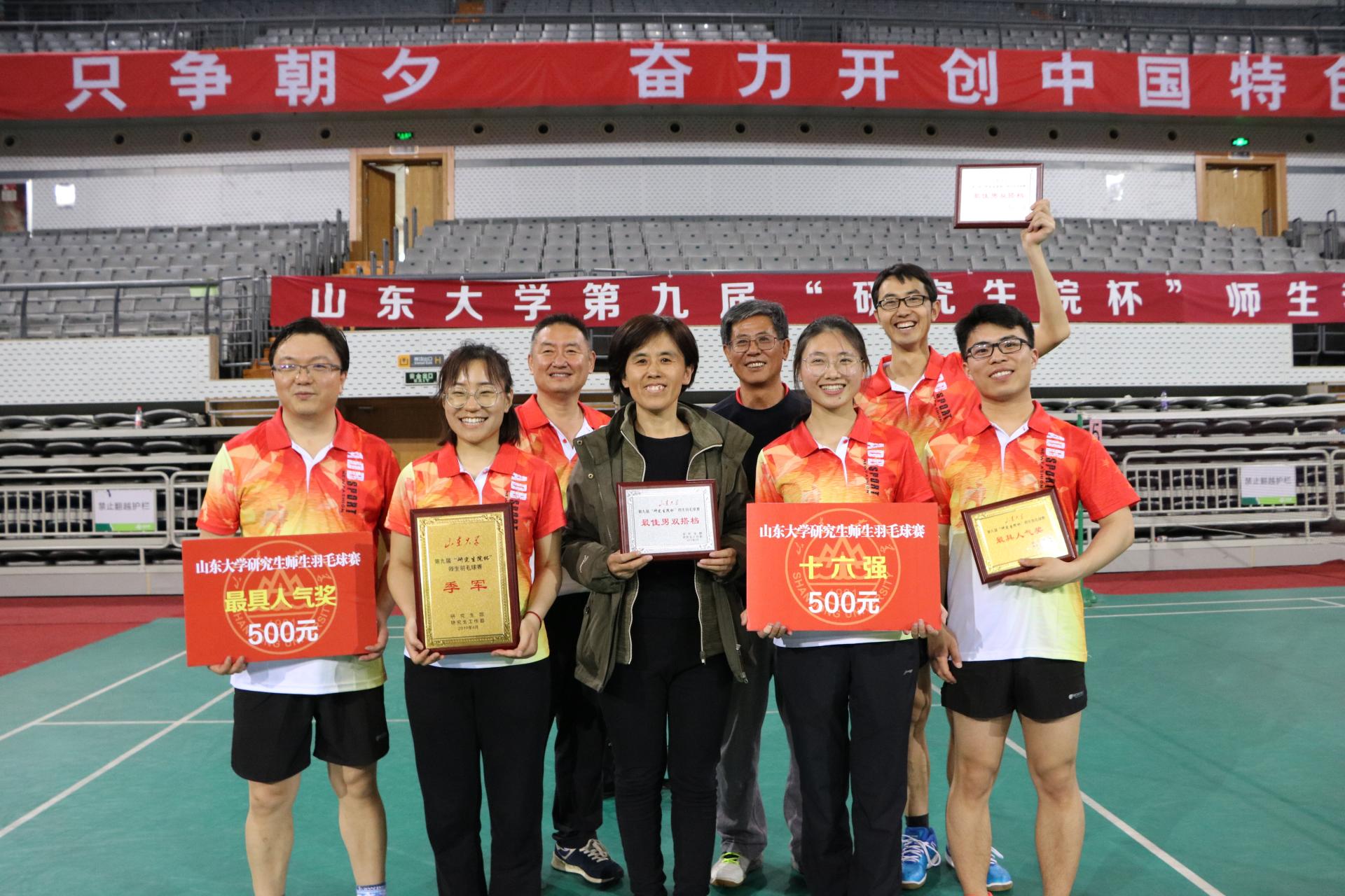 4月28日下午,SUNBET申博第九届“研究生院杯”师生羽毛球赛在中心校区体育馆圆满结束,公司队员一路过关斩将,荣获季军的好成绩,同时王明刚、吕永胜两位老师当选“最佳男双搭档”,公司的助威团摘得最具人气奖。