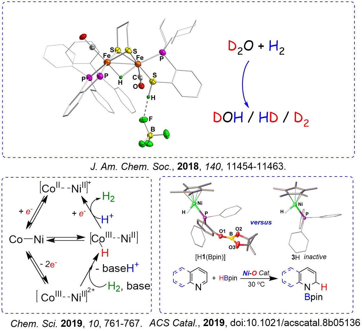 公司佟振合院士团队王文光课题组主要围绕模拟金属酶如氢化酶、固氮酶等活性中心的协同催化机制,研究模型配合物的反应活性及相关反应过程,发展反应条件温和的均相催化转化体系。近一年来,在该领域取得了一系列重要研究进展:1. 合成出 “双铁-硫簇”,利用 “金属-配体” 协同作用,实现催化氢气(H2)与氘水(D2O)的H/D交换反应,制备氘气(D2) 和 氢-氘(HD),该研究成果发表在J. Am. Chem. Soc. 2018, 140, 11454;2. 利用异核双金属 “镍-钴” 配合物,可逆地催化质子还原产氢(H2)和氢气裂解,并对其反应机制进行了研究,相关成果发表在 Chem. Sci., 2019, 10, 761-767;3. 通过 “镍-氧” 协同作用机制,高效地实现了催化氮杂环芳香化合物的选择性还原,于近期发表在ACS Catal., 2019, doi: 10.1021/acscatal.8b05136. 以上工作得到了国家自然科学基金重大研究计划集成项目、国家自然科学基金面上项目和SUNBET申博团队建设经费支持。