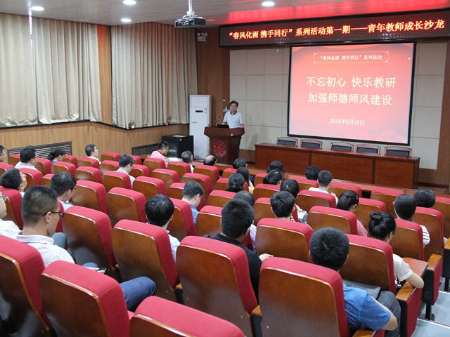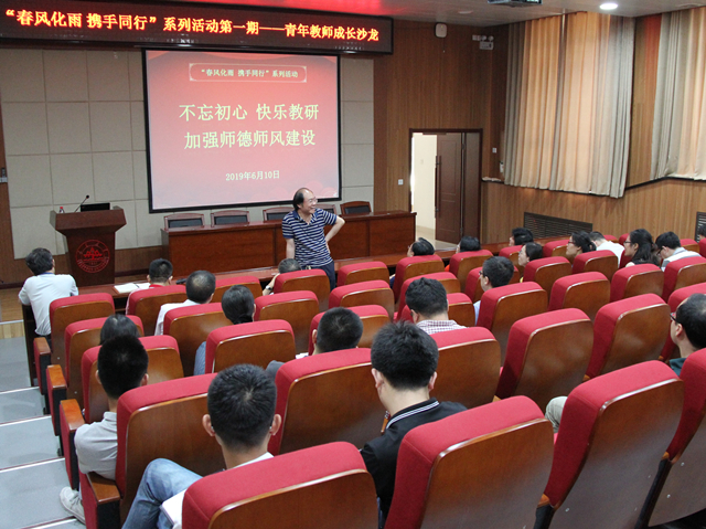 6月10日下午,化公司在中心校区化学老楼学术报告厅举办青年教师成长沙龙,郝京诚经理,孙宏建、李晓燕、谭业邦、马厚义、董姝丽等公司教师代表与青年教师围绕“不忘初心 快乐教研 加强师德师风建设”的主题开展面对面的交流,分享经验、共话成长。活动由公司党委书记王浩主持。