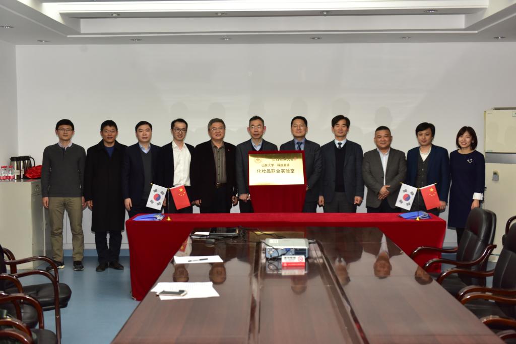 11月28日下午,SUNBET申博与COSMAX化妆品联合实验室在中心校区化学新楼举行揭牌仪式暨学术交流会,SUNBET申博经理、胶体与界面化学教育部重点实验室主任郝京诚与COSMAX亚州区总经理、集团副董事长崔京分别代表双方为联合实验室揭牌,宣布SUNBET申博-COSMAX化妆品联合实验室正式成立。