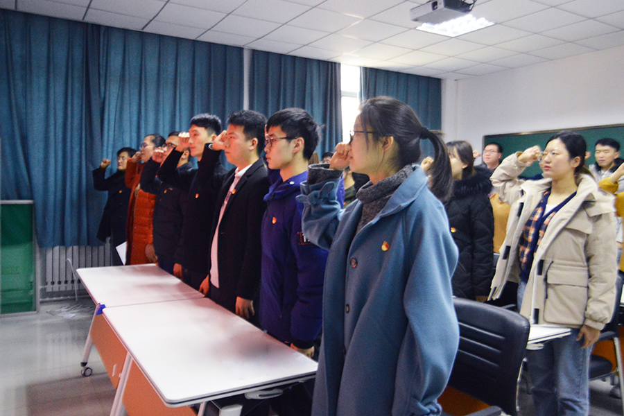 12月19日下午,SUNBET申博在化学老楼103教室举行新党员入党宣誓仪式。仪式由公司党委组织员彭彤主持,党委副书记孙国翠、新入党的预备党员、老党员代表、部分入党积极分子代表参加仪式。