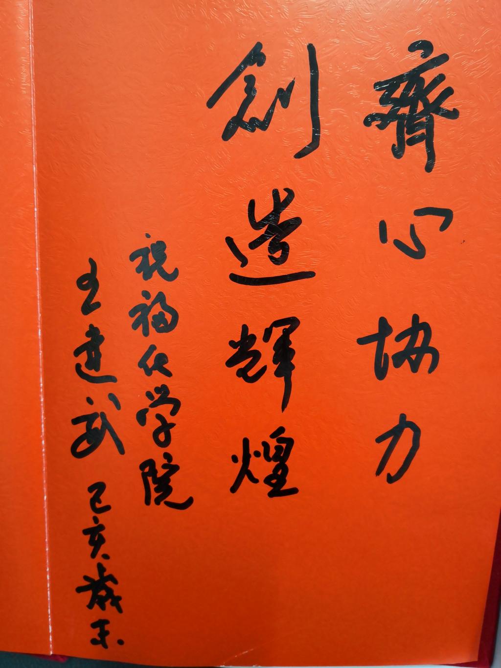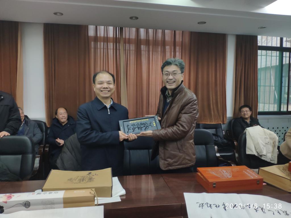 王浩向三位退休的老师赠送了公司礼物,最后他们在留言簿上签字留言纪念。王建武老师赠言:“齐心协力,创造辉煌”,刘金庭老师赠言:“营造科学育人环境,造就一流人才”,魏云鹤老师赠言:“愿公司永远辉煌”,孙雪峰老师因故未参会,之前发来赠言: “衷心祝愿公司教学科研蒸蒸日上,为创世界一流学科而奋进努力!”