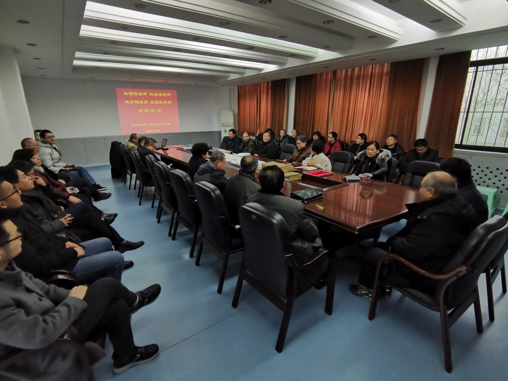 2020年1月6日下午,公司在中心校区化学新楼举行隆重而简朴的仪式,祝贺王建武、孙雪峰、刘金庭、魏云鹤四位老师光荣退休。院领导、工会委员、部分同事参加了仪式。