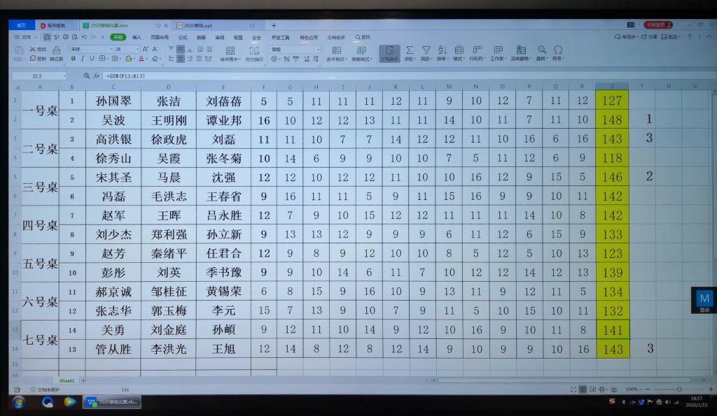 本次比赛有14个队参赛,按照奇数队、偶数队来回排列进行循环赛,13局过后,根据积分总数,产生出前三名,然后进行决赛。在冠军争夺赛中,吴波、王明刚、谭业邦三位老师组成的2号队与宋其圣、马晨、沈强三位老师组成的5号队进行了巅峰对决,三局过后,5号队仅以1分之差负于2号队,屈居亚军,2号队赢得冠军。