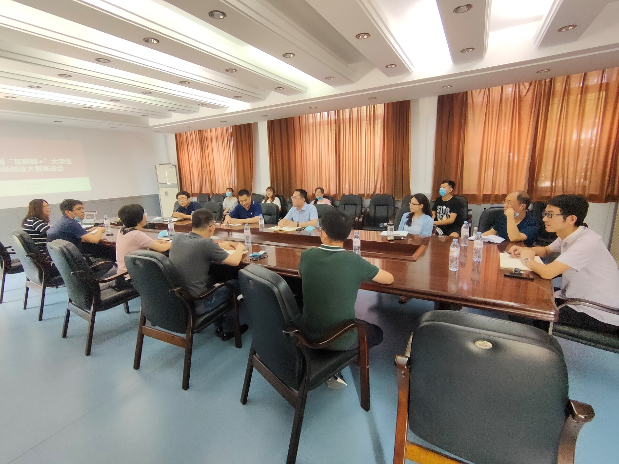 校团委创新创业中心主任南东周,大赛组委会联系人李敬聪,公司重点培育的四支团队的指导教师和同学,公司团委委员等参加了会议。