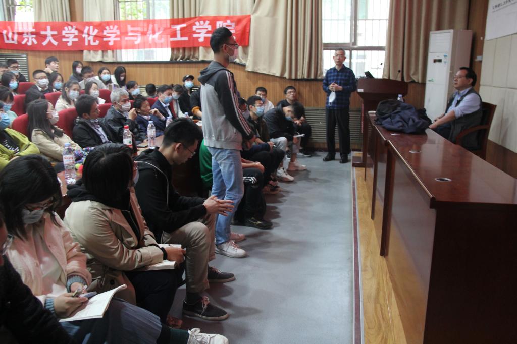 在提问环节,同学们踊跃发言,现场气氛热烈,一些同学针对报告中自己未理解的环节和机理进行提问,江雷院士耐心细致地进行了解答;有的同学结合自己理解,提出了新思路和方法,江雷院士与之讨论,更是使同学们受益匪浅。