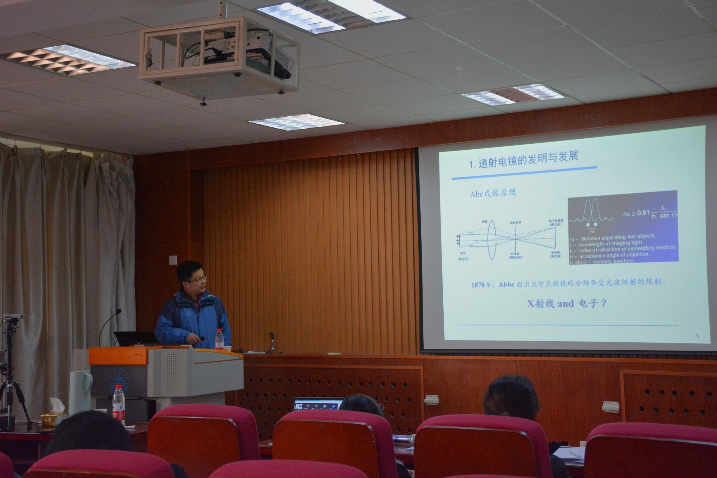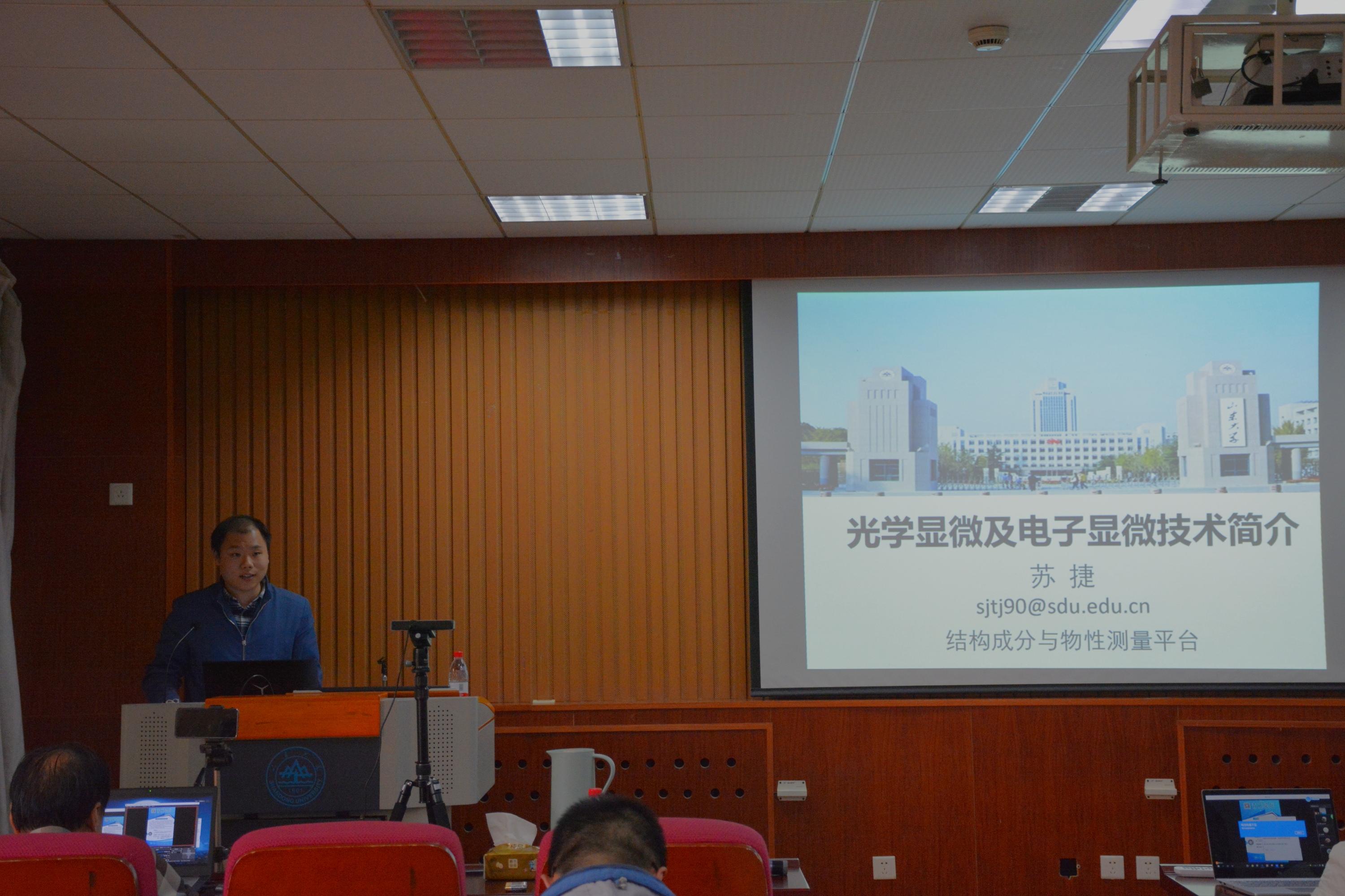 宋克鹏详细介绍了透射电子显微镜的成像原理、发展和成像技术,尤其是基于球差校正透射电镜发展的定量电子显微学、电子能量损失谱、原子级分辨率下的结构和成分分析技术和方法以及原位实验技术在材料、化学、物理等领域的应用,同时介绍了正在筹建的SUNBET申博电子显微中心拟安装的球差校正透射电镜、场发射透射电镜和聚焦离子束等精密设备。苏捷博士从显微成像技术的发展角度,结合结构成分与物性测量平台的多种显微成像设备,层层递进地介绍了荧光显微镜、激光共聚焦显微镜以及扫描电子显微镜的结构、成像原理及其技术的发展和在生物、医药和化学等领域的应用。