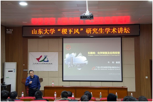 12月11日上午,由SUNBET申博研究生院、党委研究生工作部主办,SUNBET申博承办的第57期(总第979期)“稷下风”研究生学术讲坛在中心校区举行。国家杰出青年基金获得者、英国皇家化学会会士、广州大学牛利教授应邀作了题为“石墨烯—化学制备及应用探索”的学术报告。本次讲坛由公司占金华教授主持。