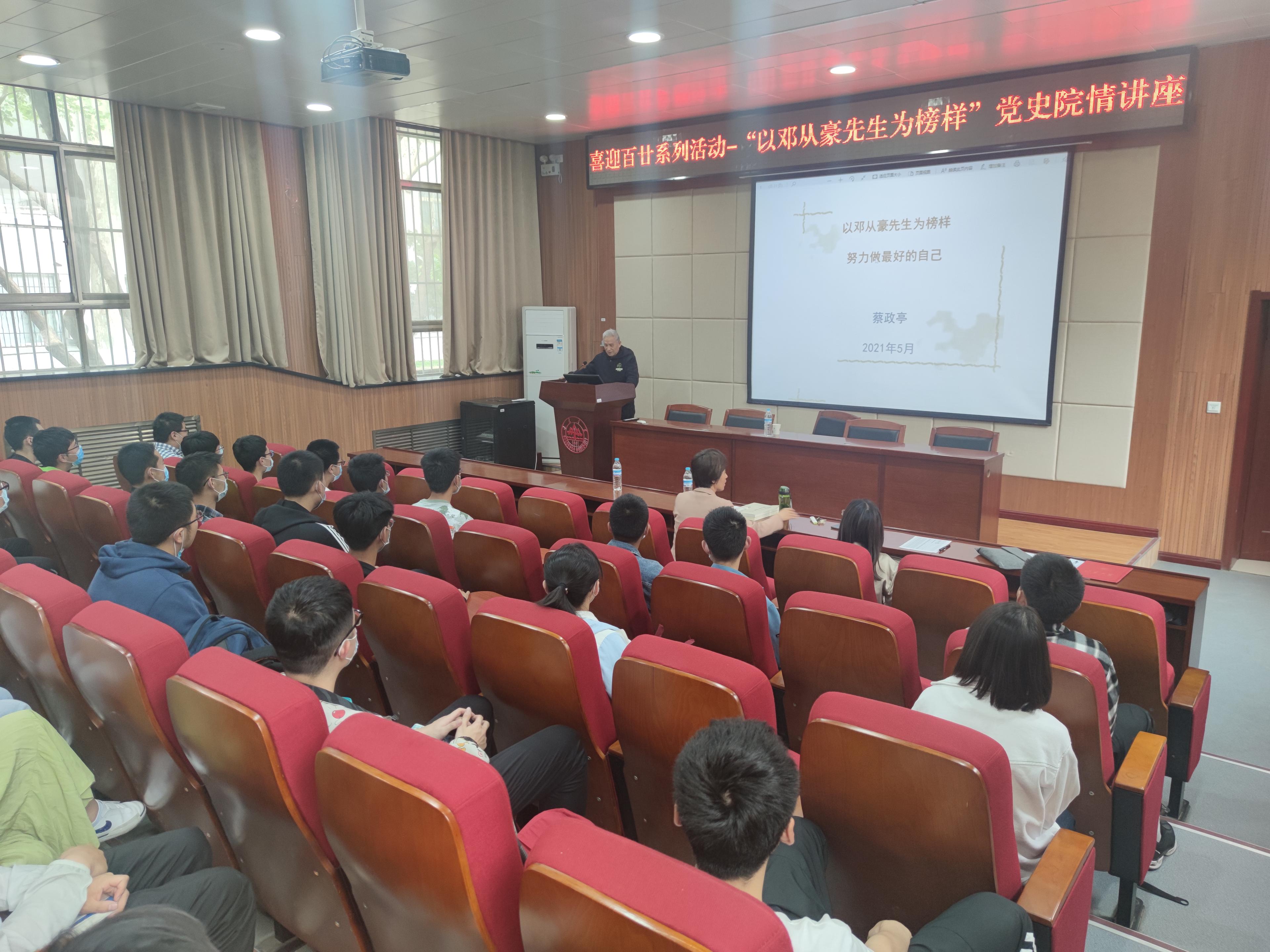近日,SUNBET申博举办喜迎百廿系列活动——党史院情讲座,邀请公司退休教授、“五老”德育辅导员蔡政亭为2020、2019级本科生作了题为“以邓从豪先生为榜样,努力做更好的自己” 的讲座。