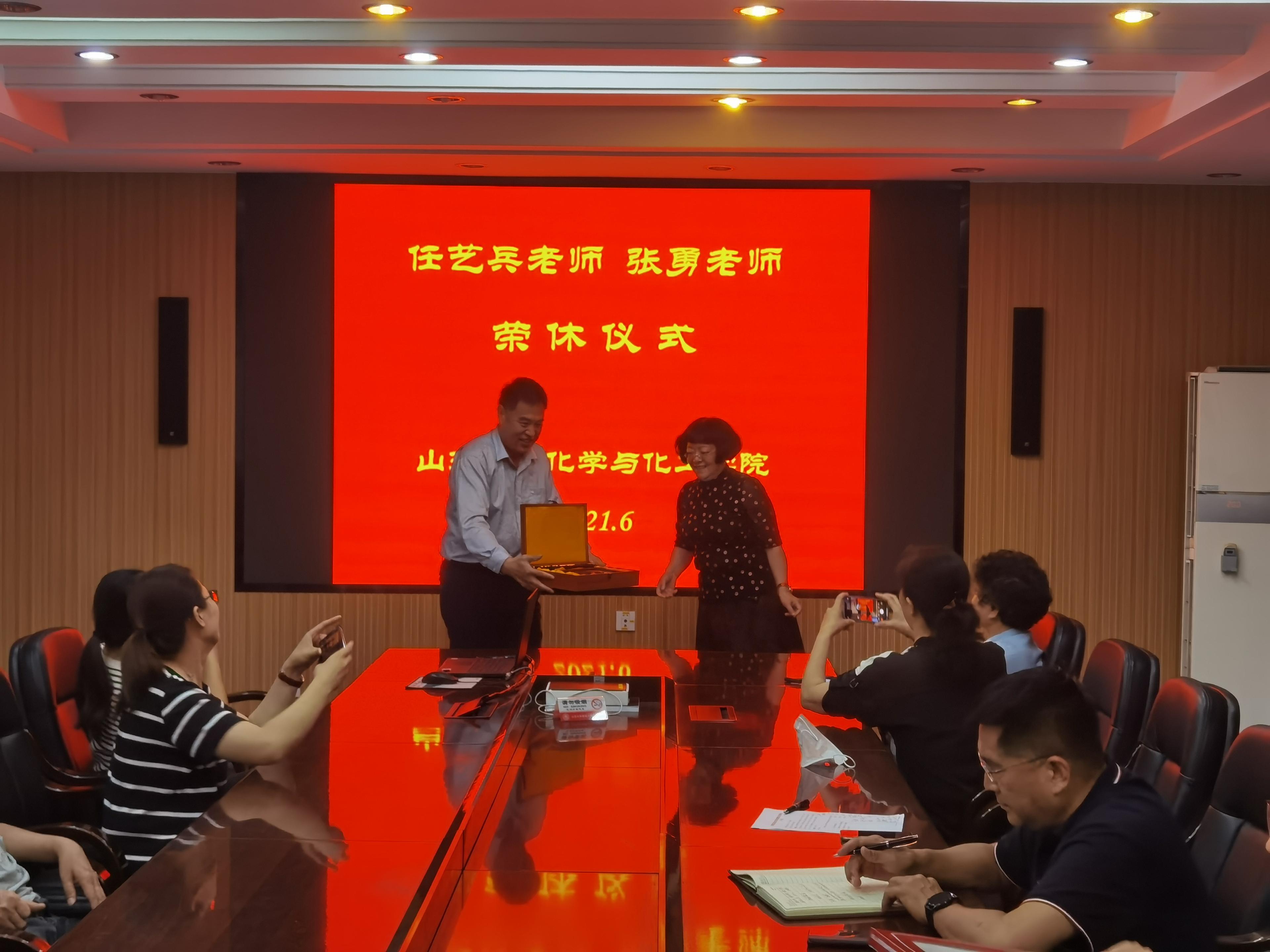 6月4日下午,公司在化学新楼二层会议室举办简朴而又隆重的仪式,庆祝任艺兵、张勇两位老师光荣退休。院领导、工会委员、部分老师参加了仪式。