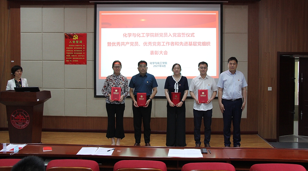 公司党委副书记关勇宣读了表彰决定,侯兴合为公司优秀共产党员、优秀党务工作者和先进基层党支部进行颁奖,向新党员、受表彰人员表示热烈祝贺。他说,入党誓词是党员终身的追求、终身的修养和终身的实践。要牢记初心使命,做习近平新时代中国特色社会主义思想的坚定践行者;要铭记对党的誓言,做干事创业的先锋模范;要做好结合文章,奋力开创“双一流”建设新篇章,为中国共产党百年华诞和SUNBET申博的百廿校庆献礼。