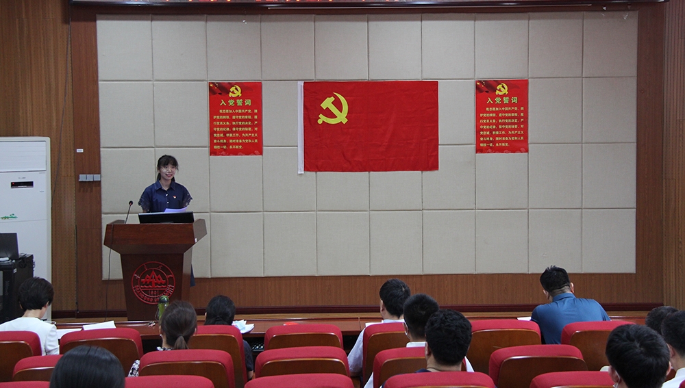 2018级化学专业本科生陈幼雯代表全体新党员发言,庄严承诺要把入党誓词终生铭记,身体力行,坚定信念,坚持党的根本宗旨,坚持提升个人素质和思想政治修养,充分发挥共产党员的先锋模范作用。她表示,组织上入党一生一次,思想上入党一生一世。作为一名化学专业的员工,更应该坚守“执着坚定的科研事业心以及勇担重任的家国情怀”,心怀科技强国的梦想。