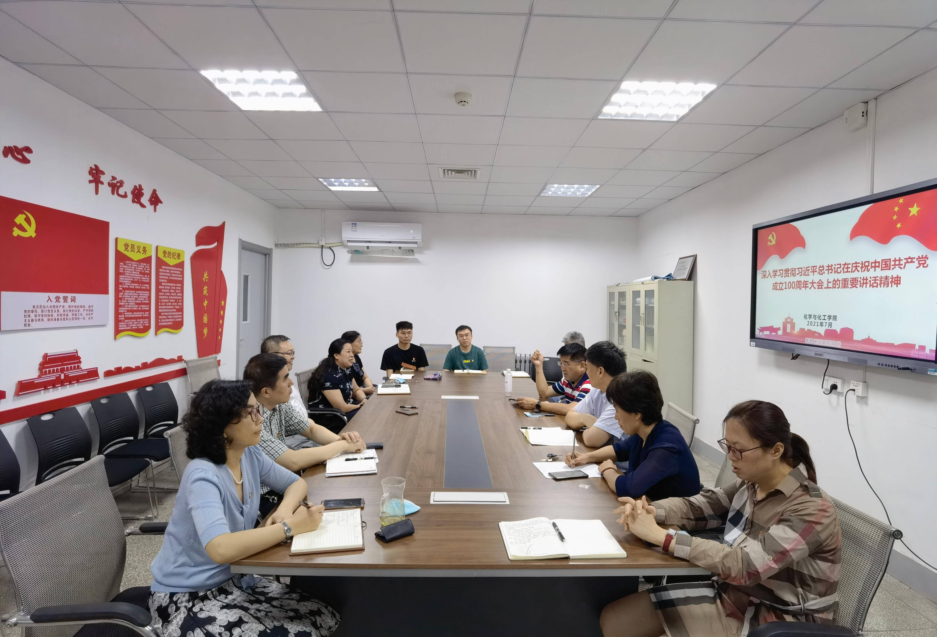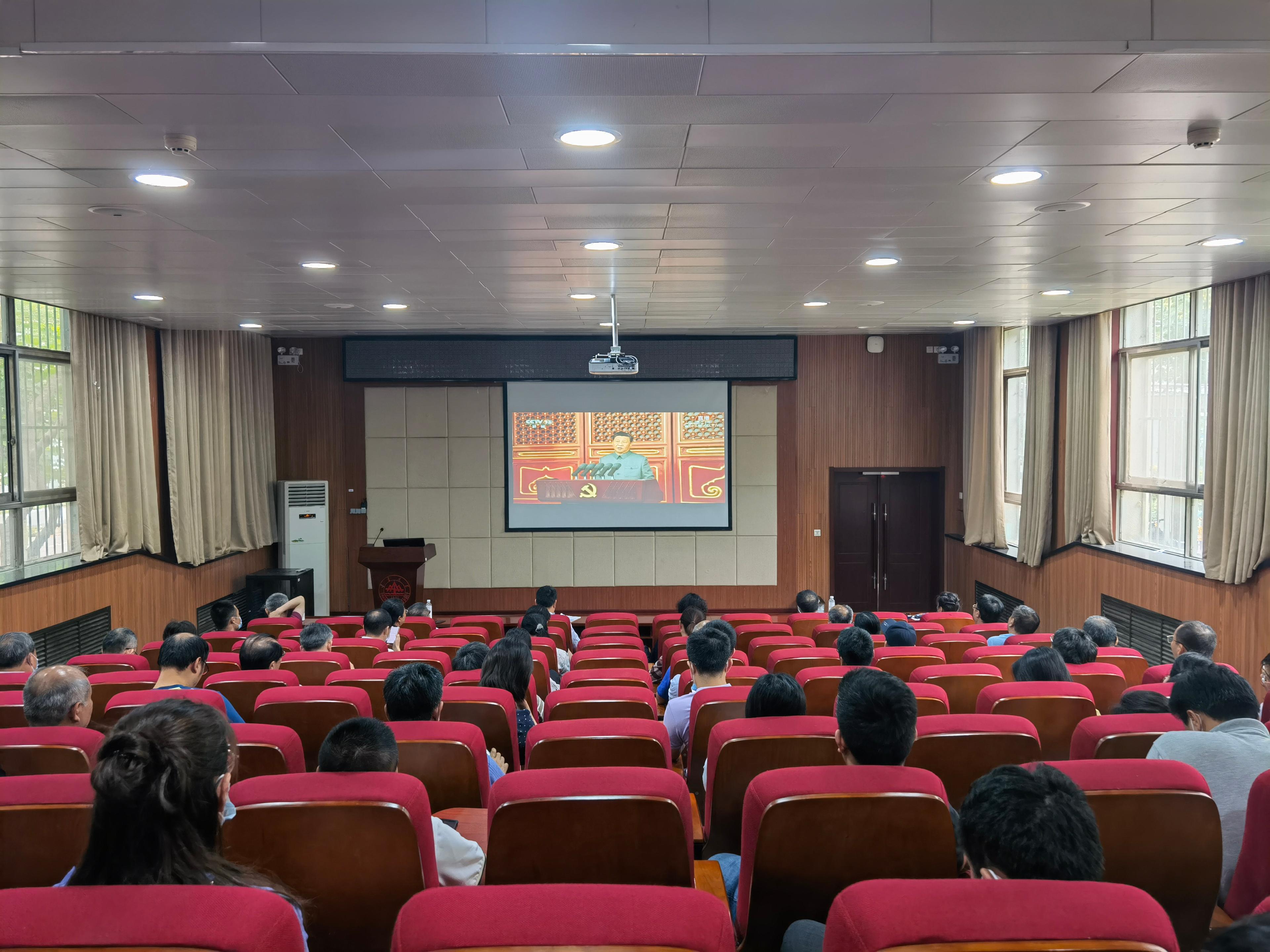 7月1日上午8时,庆祝中国共产党成立100周年大会在北京天安门广场隆重举行,中共中央总书记、国家主席、中央军委主席习近平发表重要讲话。公司组织党员师生在学术报告厅和化学老楼102-8教室集体收看了大会直播。