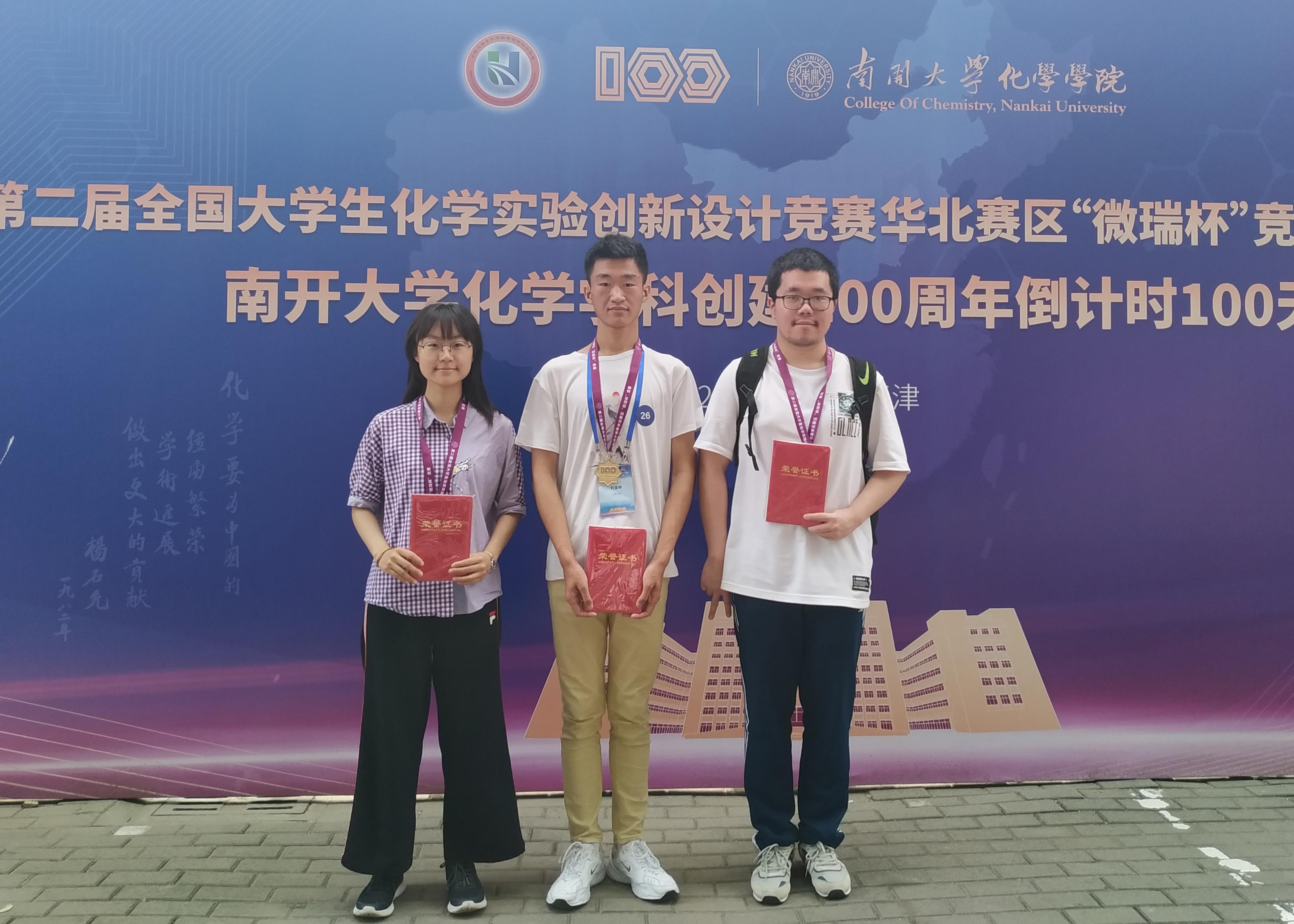 此次竞赛,由苑世领、刘刚两位老师精心指导,马莹老师带队参加,在筹备过程中得到了历史与文化公司王芬教授,化学实验教学中心宋其圣、胡清萍、宋淑娥老师的帮助和支持。