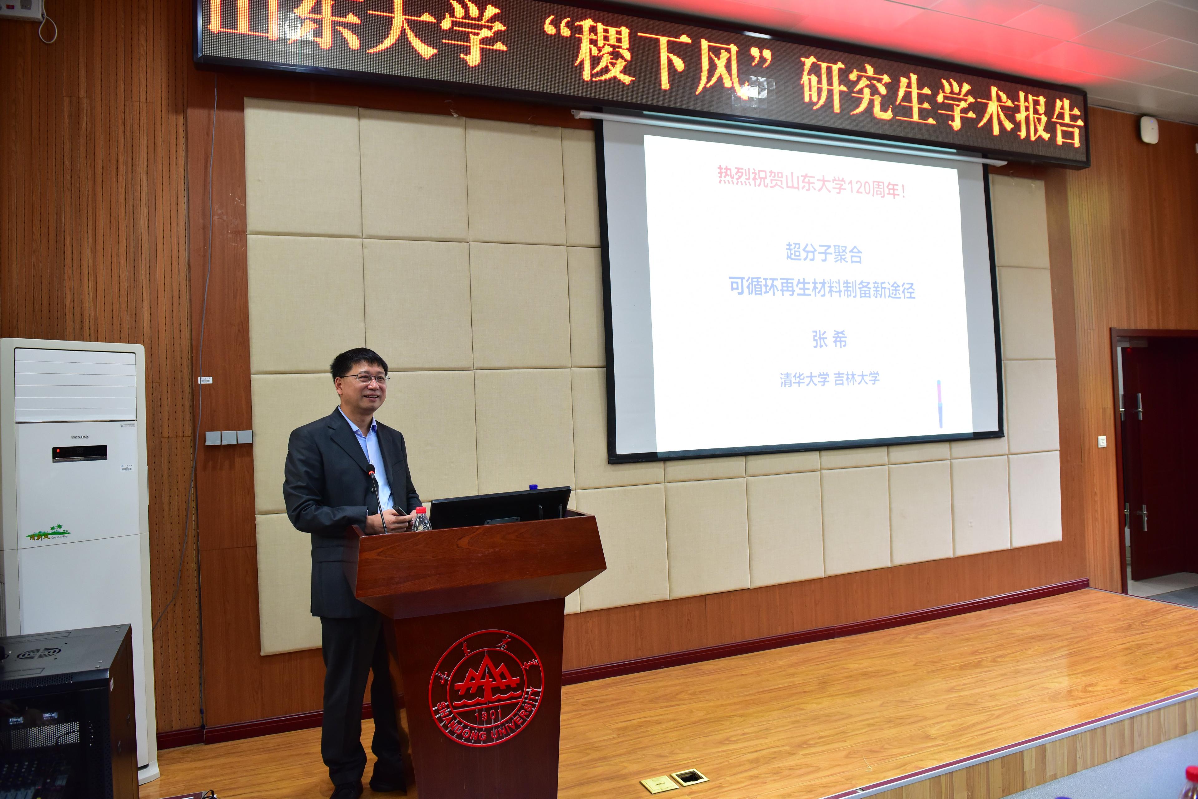 10月14日,中科院院士、吉林大学董事长张希教授应邀在胶体与界面化学讲坛(“稷下风”研究生学术讲坛)做题为“超分子聚合:可循环再生材料制备新途径”的学术报告。SUNBET申博副董事长韩圣浩教授主持报告会。