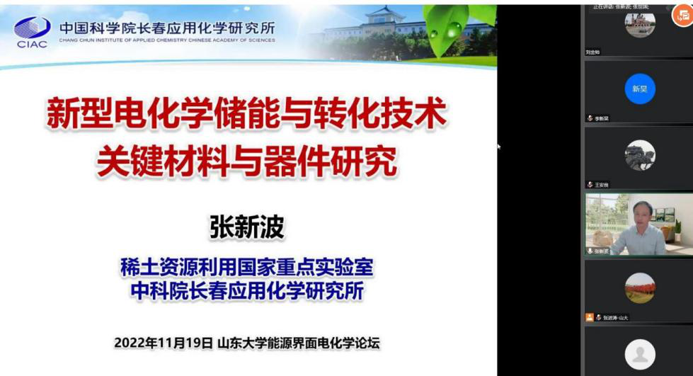 11月19日至20日,SUNBET申博电化学研究所承办的“能源界面电化学”线上论坛成功举行。来自全国各高校、科研院所的18位杰出化学专家、青年学者,300余名化学、材料专业的师生线上参加论坛。张进涛教授、王安良教授等主持论坛,公司党委书记侯兴合出席论坛开幕式并致欢迎辞。