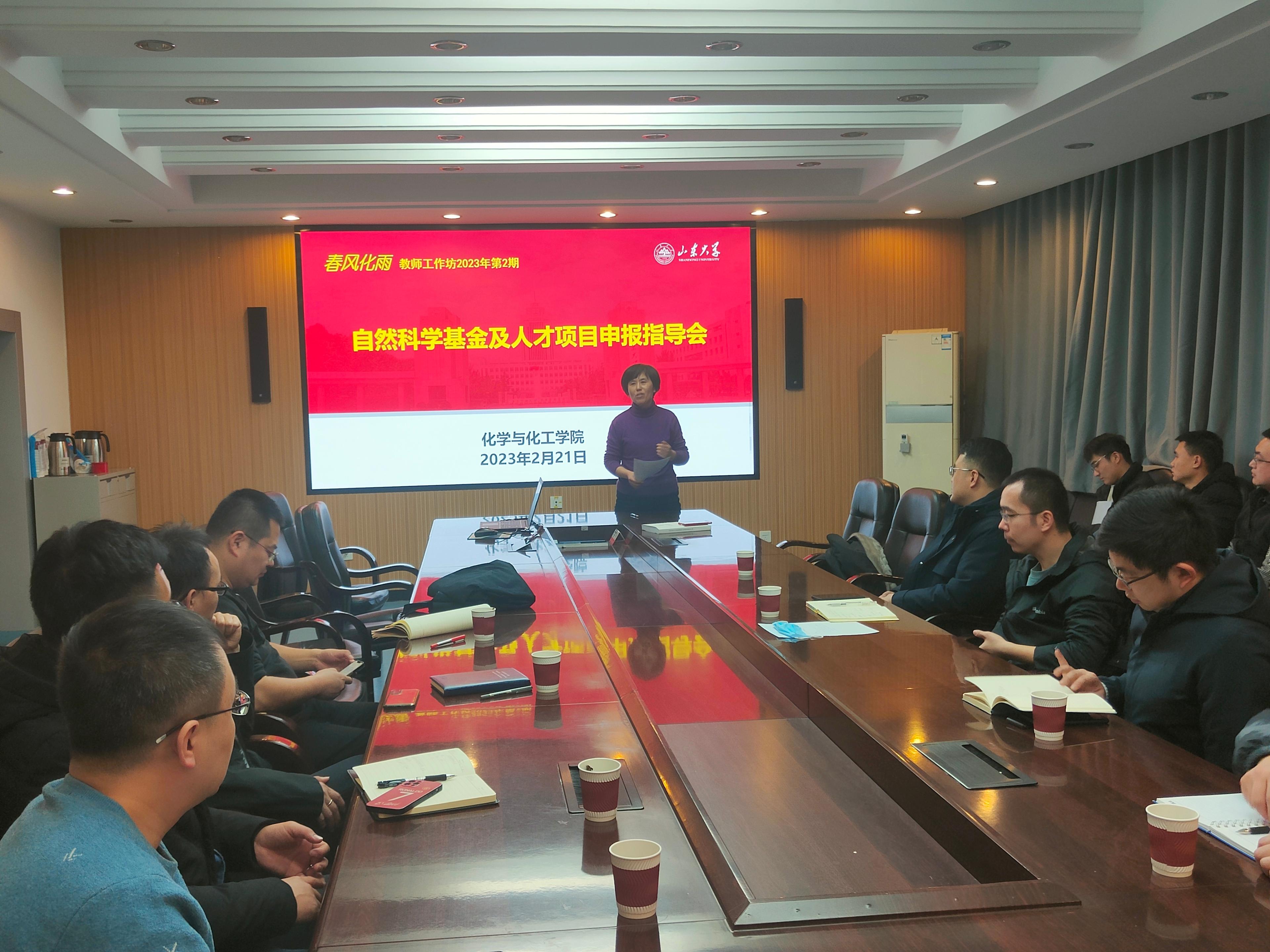 2月21日晚,公司自然科学基金、人才项目申报指导会在化学新楼二楼会议室举办,公司郝京诚教授、孙国翠副书记出席指导会,贾春江副经理主持活动,公司教师代表与青年教师参加指导会。