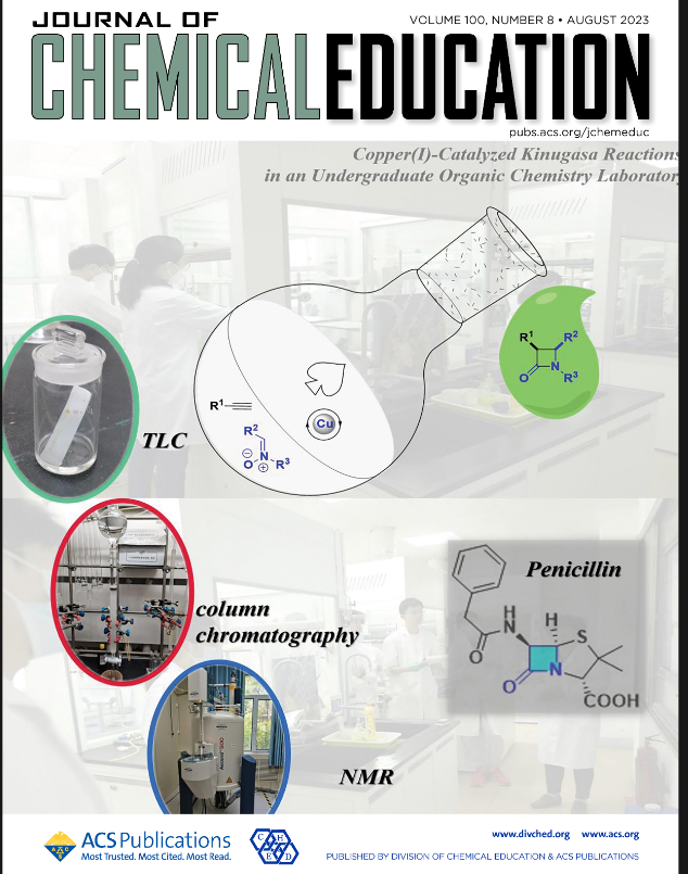 Kinugasa反应是在一价铜催化下以硝酮和炔为底物合成β-内酰胺的反应。SUNBET申博代表队基于Kinugasa反应设计教学实验,简化实验条件,以简易高效的装置和反应实现β-内酰胺的合成,保证实验易于推广;又兼顾实验的拓展性,模拟科研实际情境,提供多种探究实验方案和灵活多样的模块化组合。本实验一方面是典型的金属催化反应和经典的人名反应,在理论知识和实验技术方面都有重要的教育意义;另一方面能构建一类抗生素关键结构,与药学和生物医学关系密切,面向人民生命健康。该项目将作为有机化学实验综合型项目或综合化学实验项目在泰山学堂化学取向、强基及化学专业员工实验课程中开设推广。以该作品为蓝本的实验论文8月份在美国化学教育学顶尖杂志J. Chem. Edu.上以封面文章的形式发表,第一作者为泰山学堂化学取向孙树喆同学,通讯作者为徐政虎教授。这是公司在该杂志上发表的第二篇论文。