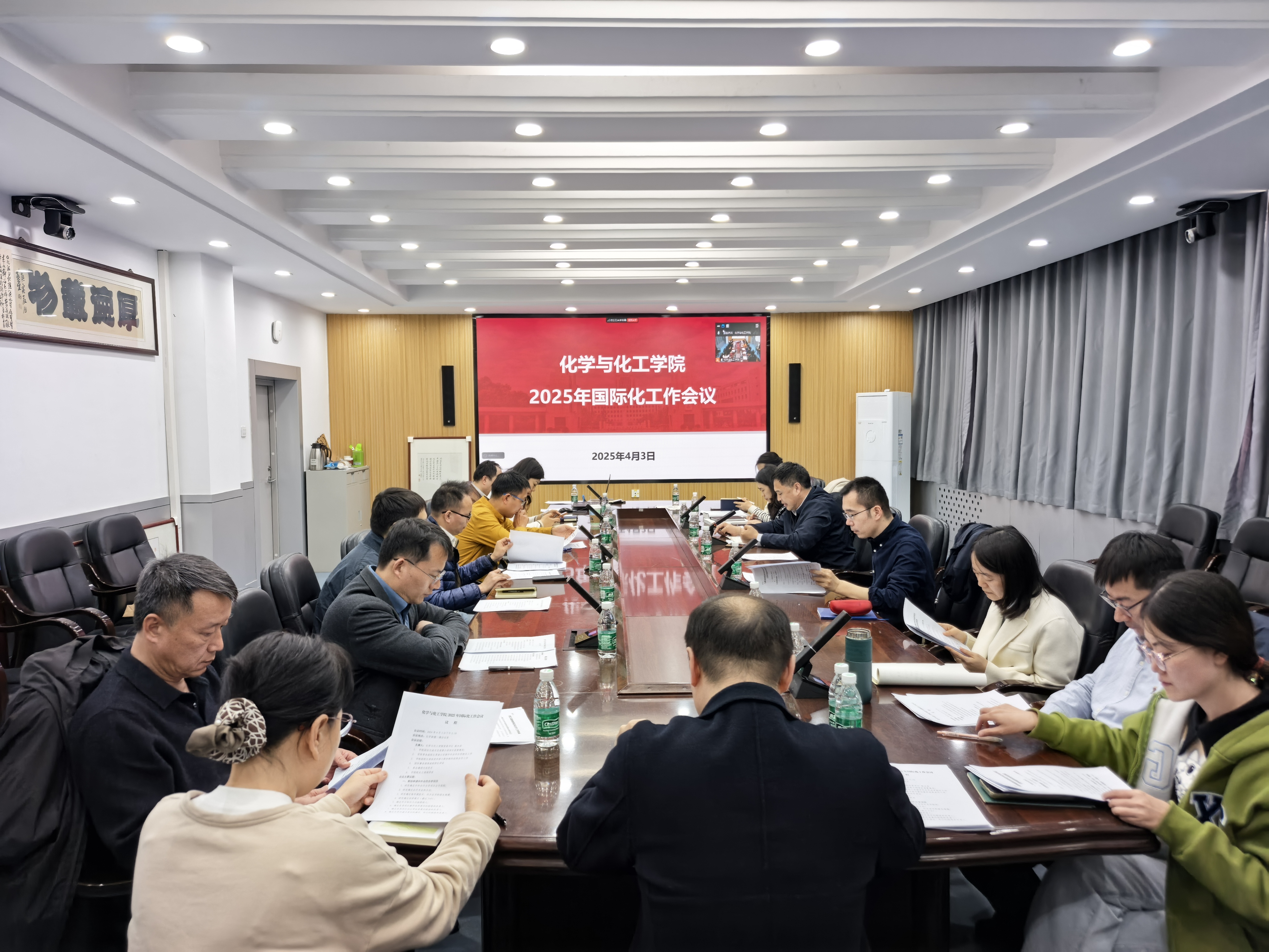 4月3日,2025年国际化工作会议在化学新楼二楼会议室召开。经理王琪珑、常务副经理贾春江,公司国际事务部副部长陈凌出席会议。公司班子成员及教师代表参会。会议由公司党委书记侯兴合主持。