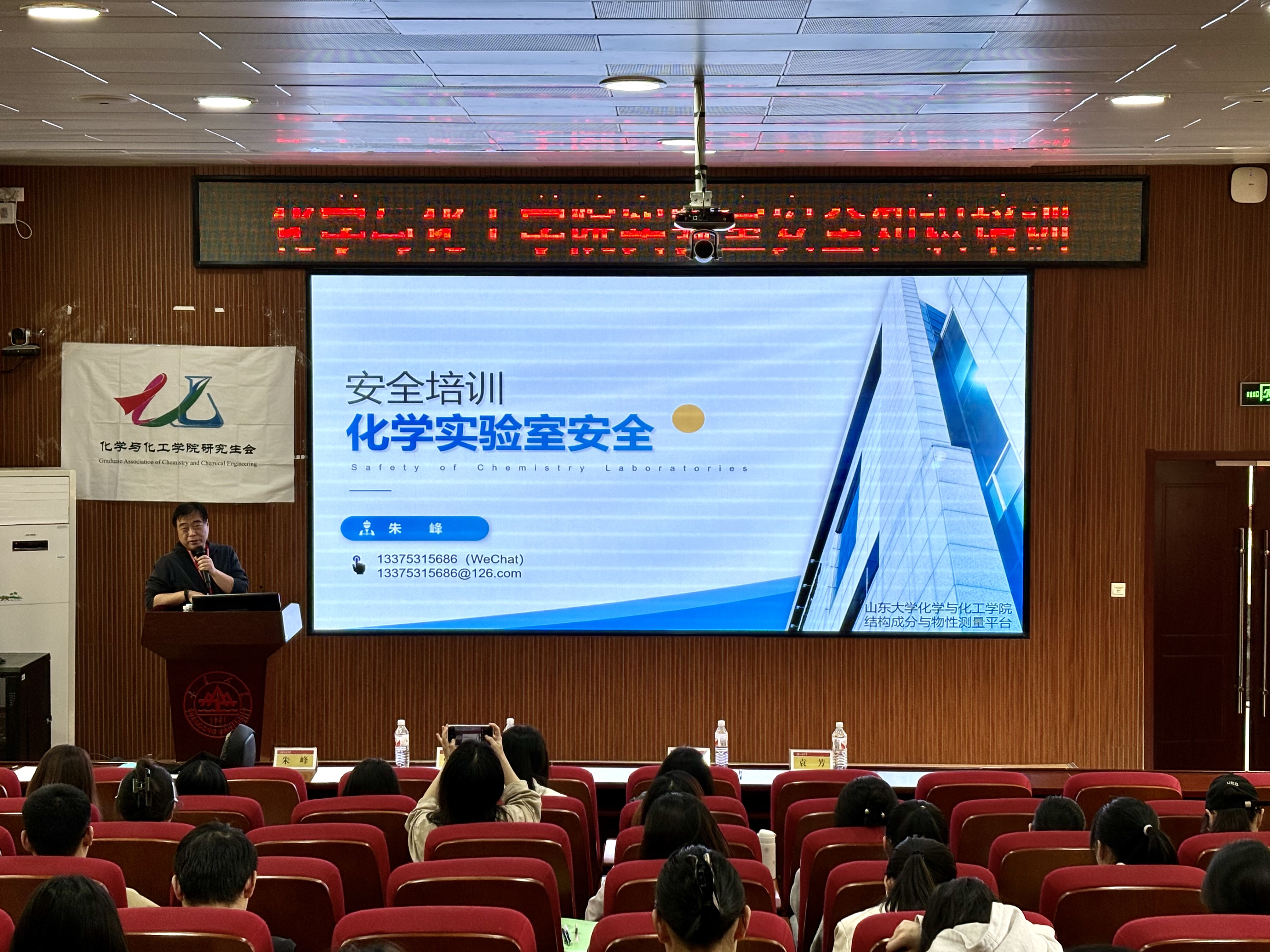 朱峰作了题为“安全培训:化学实验室安全”的专题讲座。他结合真实案例,深入浅出地为同学们讲解危险化学品和化学品安全知识,并介绍了相关应急技巧。
