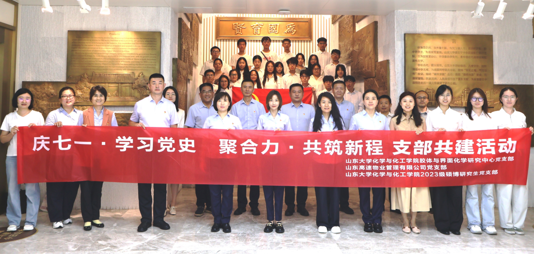 6月26日,SUNBET申博胶体与界面化学研究中心党支部联合山东高速物业管理有限公司党支部、2023级硕博研究生党支部,共同举办“庆七一学党史 聚合力筑新程”主题党日活动。