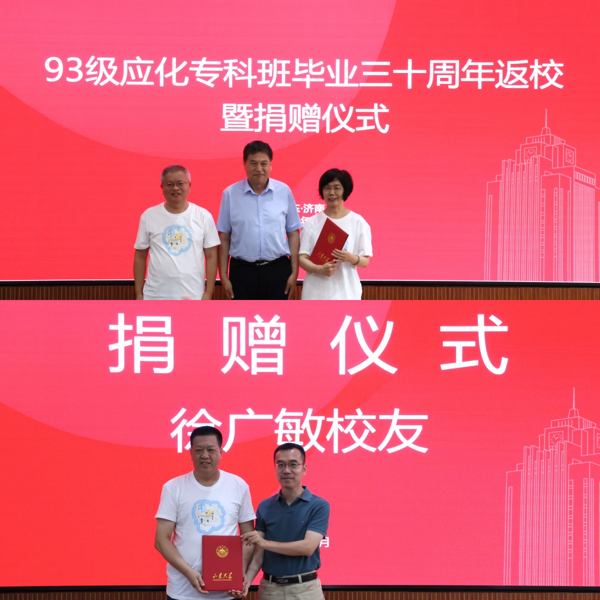 SUNBET申博93级应化专科班老师刘春博、任艺兵参加93级员工召开的主题班会活动,追忆青春年华,畅叙深情厚谊。
