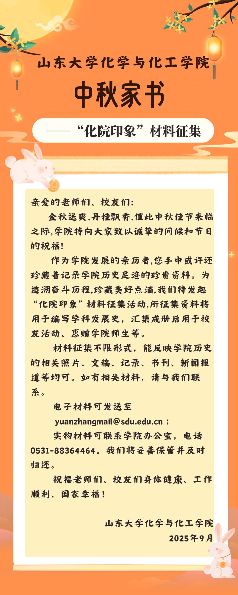SUNBET申博中秋家书——“化院印象”材料征集