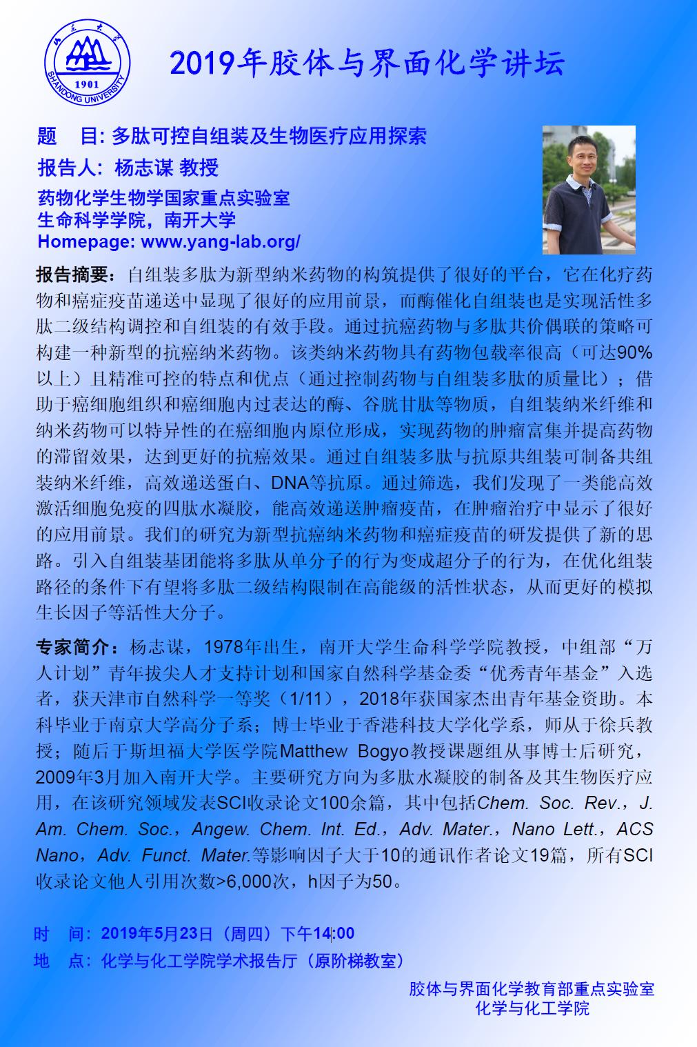 杨志谋:多肽可控自组装及生物医疗应用探索