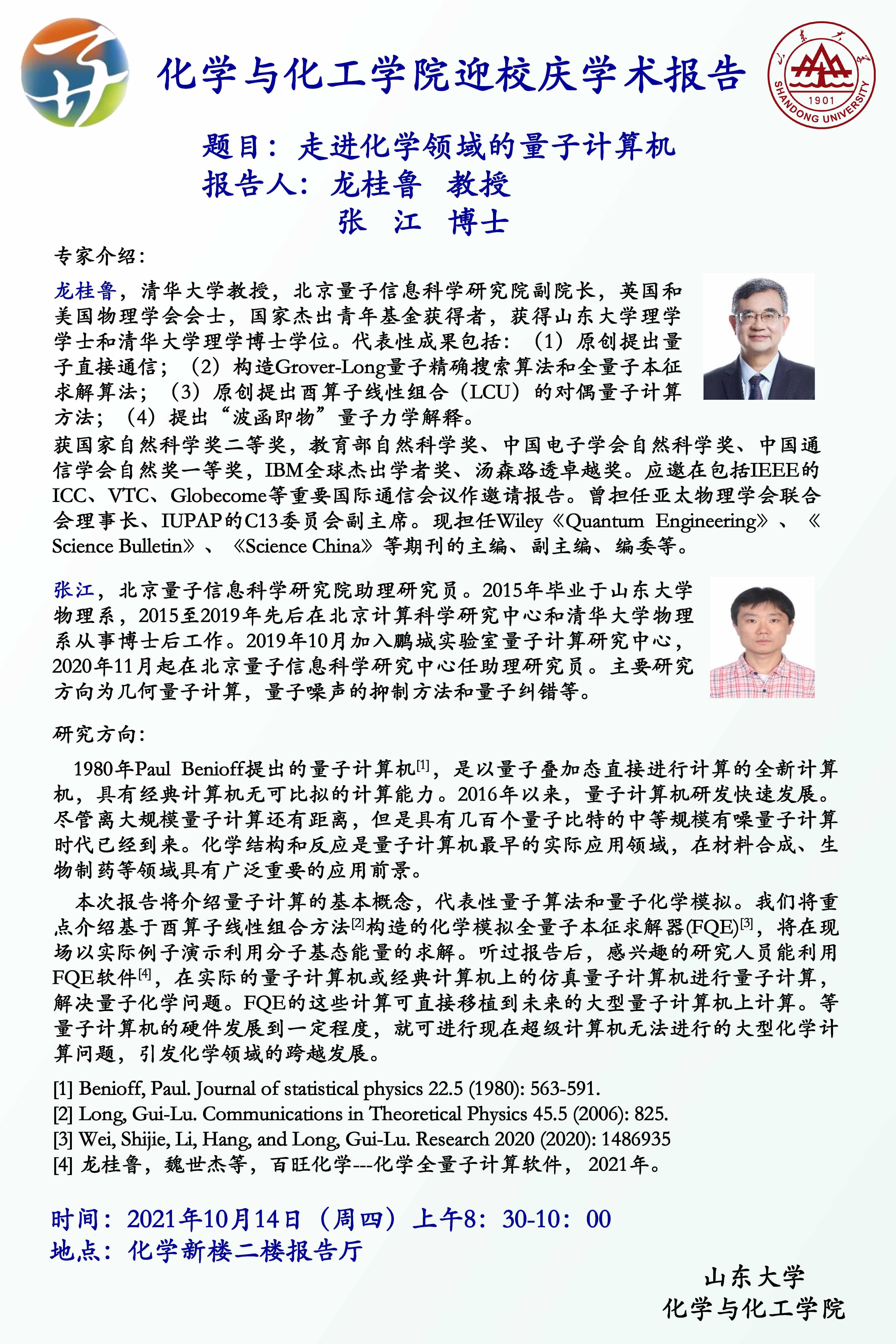 迎校庆系列学术报告:龙桂鲁教授、张江博士学术报告