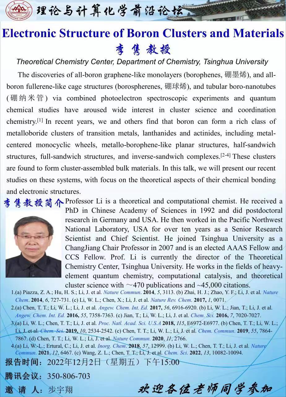 李隽教授学术报告:Electronic Structure of Boron Clusters and Materials