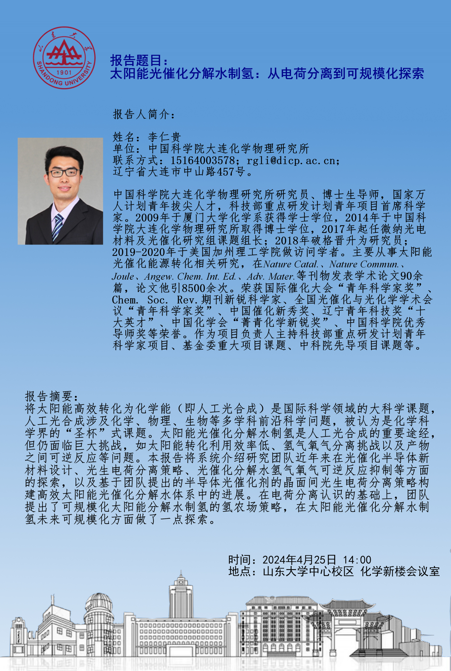 学术报告:太阳能光催化分解水制氢:从电荷分离到可规模化探索