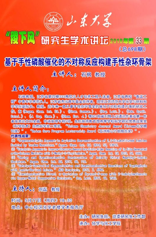 中国科公司上海有机化学研究所洪然博士学术报告预告