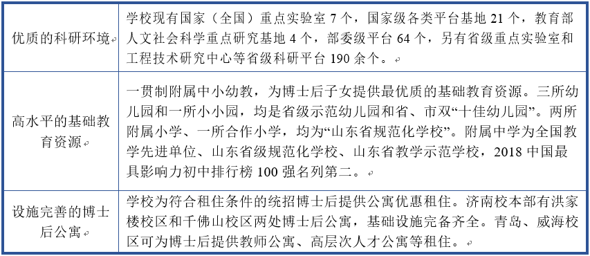 2.特别资助类博士后期满达到培养要求可应聘相关学科教师岗位,也可参与齐鲁青年学者等青年人才项目的遴选。