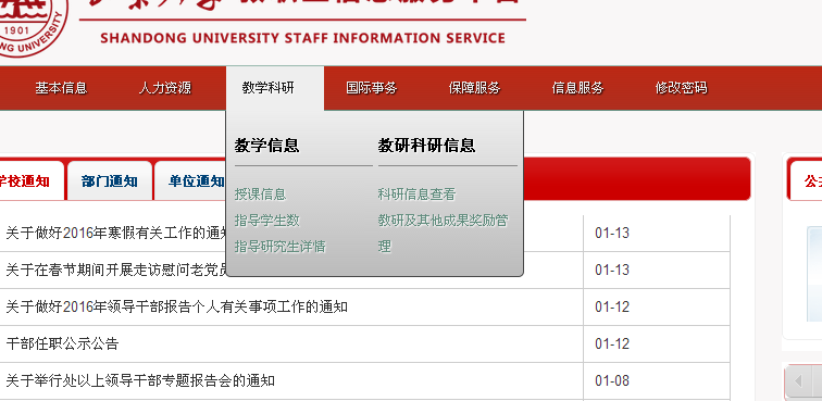 二、教职工登陆人事部网站首页/晋升考核网站,用户名为本人工资号,初始密码是1,更改密码忘记的使用身份证号找回密码。