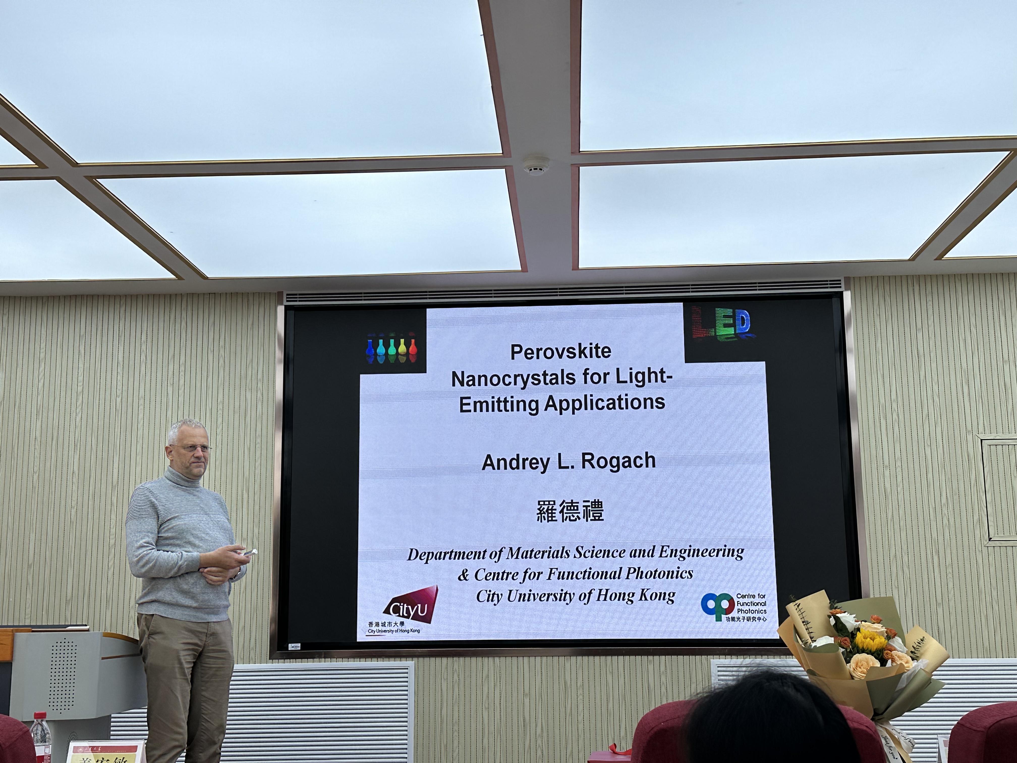 仪式后,Rogach教授作了题为“Perovskite Nanocrystals for Light Emitting Applications”的报告。
