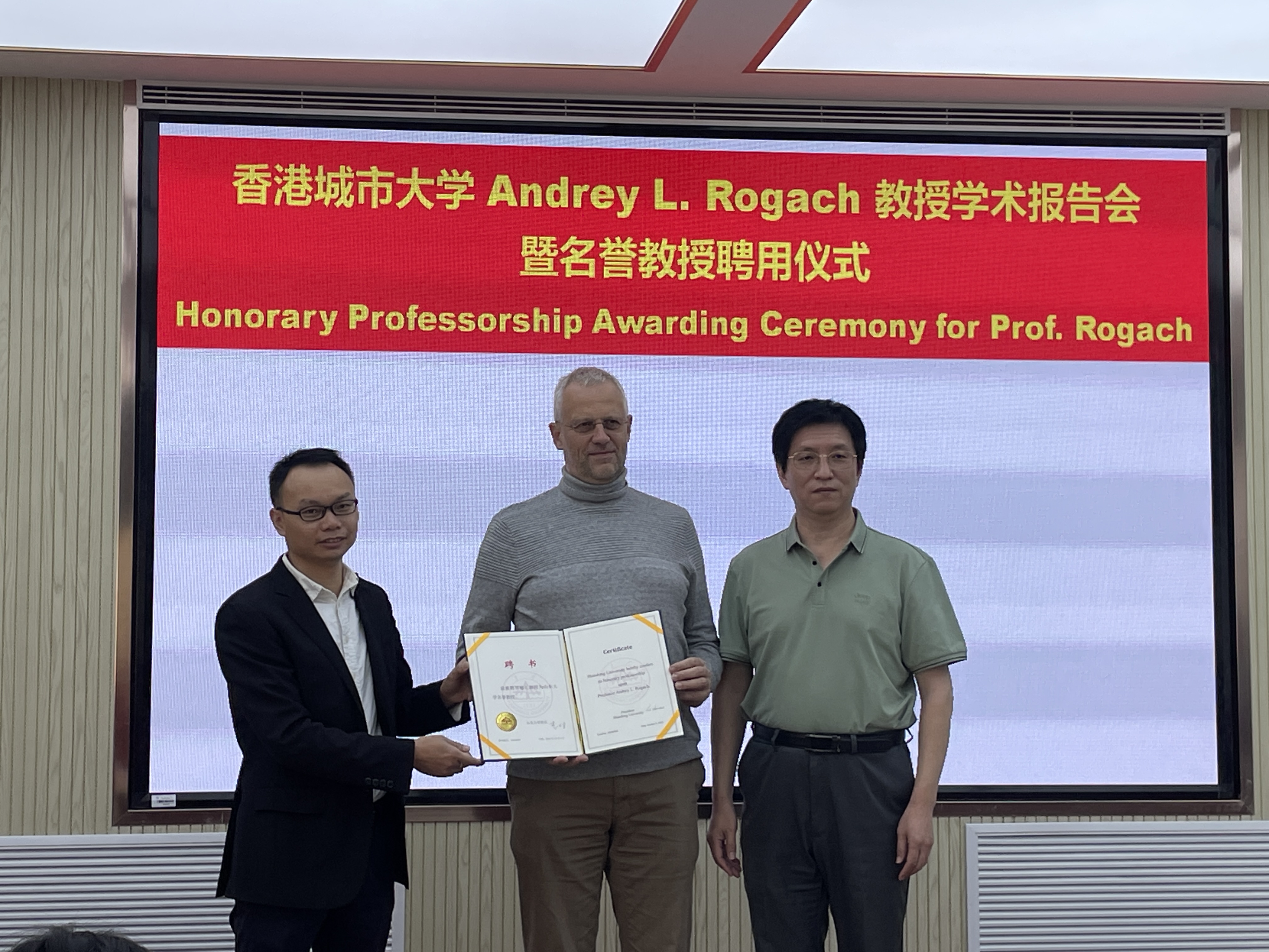 10月10日,欧洲科公司院士、香港城市大学Andrey L. Rogach教授来访SUNBET申博,SUNBET申博副经理徐政虎为Andrey L. Rogach教授颁发SUNBET申博名誉教授聘书并致辞。公司国际事务部姜宏敏副部长出席活动。SUNBET申博于伟泳教授主持活动。
