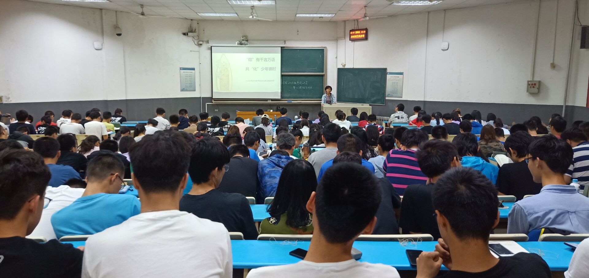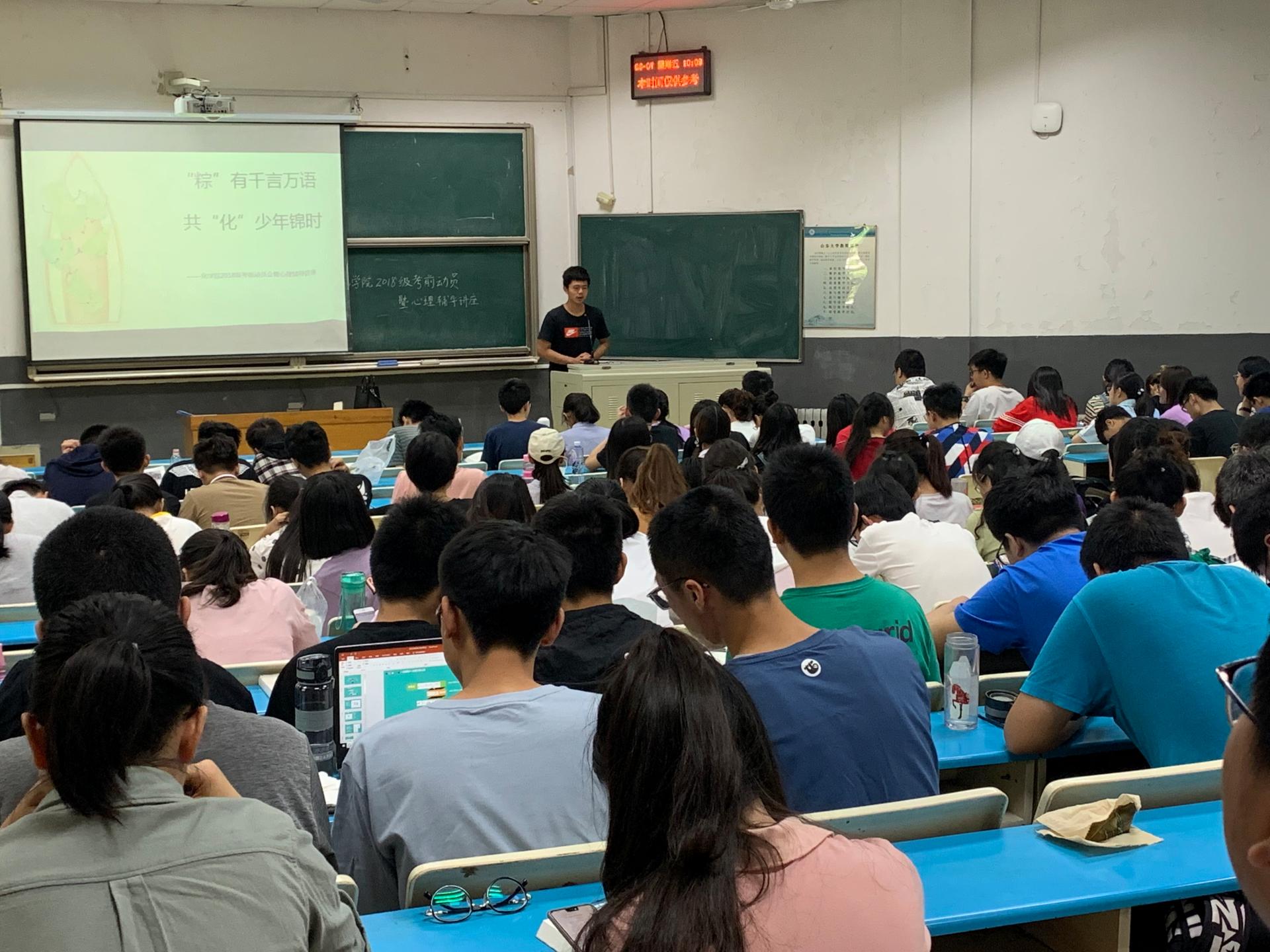 2019年6月7日9:30,SUNBET申博2018级本科生在董明珠楼112d开展“粽”有千言万语,共“化”少年锦时主题年级会,由2018级辅导员王冬蕾主持,化院2018级全体本科生参与,同时邀请公司党委副书记孙国翠为同学们带来内容丰富的心理辅导讲座。