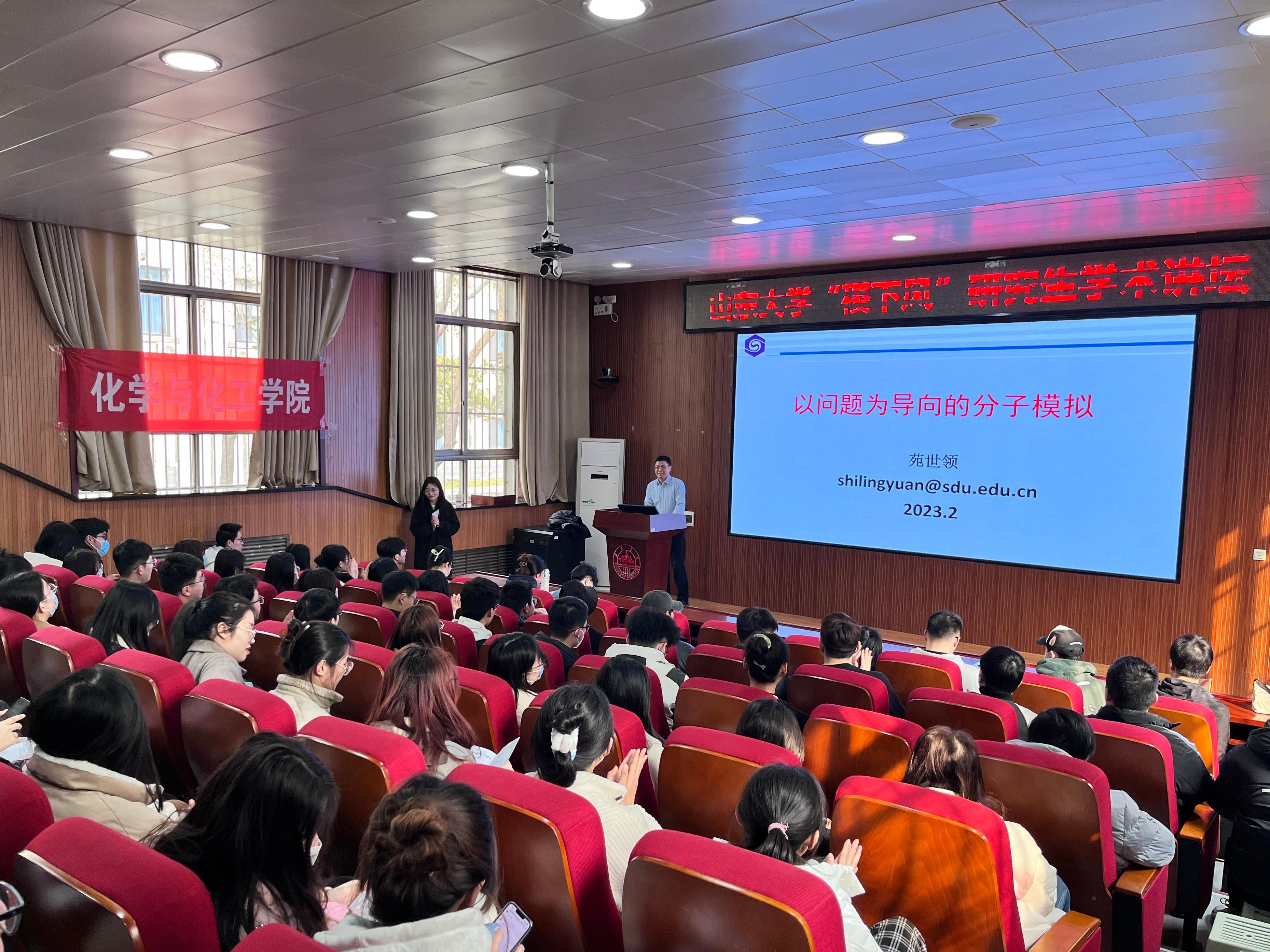 2月28日,由SUNBET申博研究生院、党委研究生工作部主办,SUNBET申博承办的2022年第81期(总第1210期)“稷下风”研究生学术论坛在化学老楼学术报告厅举办。SUNBET申博苑世领教授作了题为“以问题为导向的分子模拟”的学术报告,200余名研究生参与讲坛。