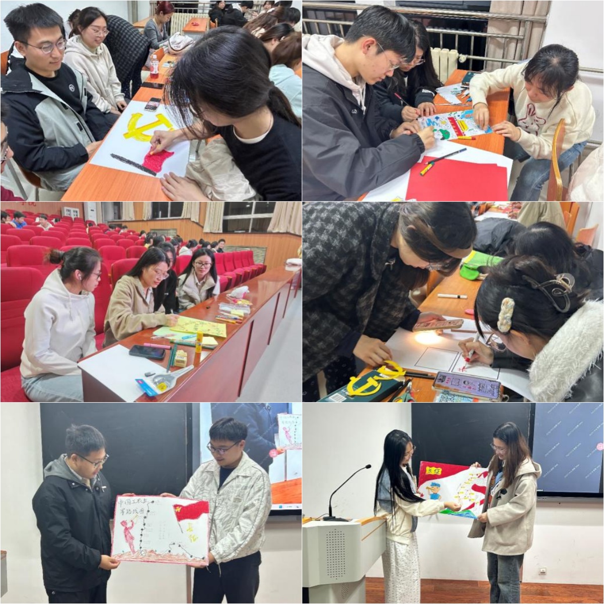 小画笔,大情怀,同学们用自己对色彩搭配的独特理解,结合专业技能通过剪贴画、绘画创作等形式从不同的角度讲述党的奋斗历程,用艺术的形式传承红色基因。