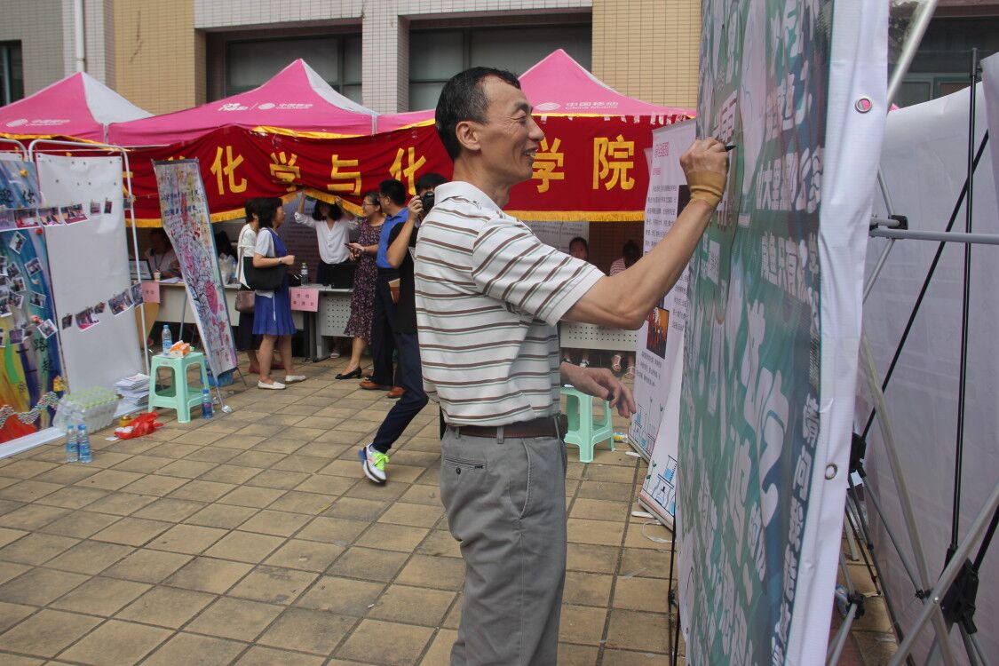 8号早晨五点半,迎着晨曦第一抹阳光,迎新人员早早的来到了迎新场地,开始了迎新前最后的准备工作。条幅、照片墙、签名墙、合影墙、心愿墙、公司展板,一个个充满化院特色的装扮,只为给即将到来的新同学留下难忘的欢迎礼。上午8点,迎新正式开始。新生签到、资料审查、信息核对、校园卡发放、拍照墙留念、元素祝语,新生报到流程有条不紊地开展。