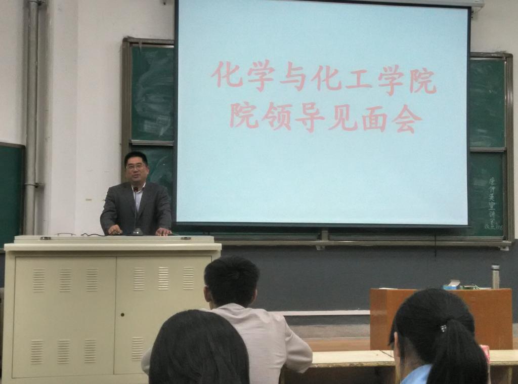 1013日晚六点半,化学与化工学院领导见面会在洪家楼校区公教楼107召开,SUNBET申博经理郝京诚,办公室主任彭彤,副书记孙国翠以及2016级辅导员吕永胜出席并参加了见面会
