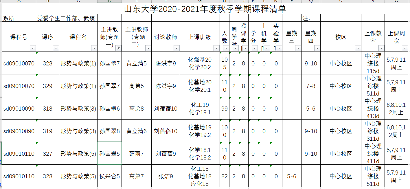 各班学习委员进行协调后,10月23日12:00前,由一位学习委员代表填写《分组情况》,电子版发送至讨论课教师邮箱(张洁sdzj@sdu.edu.cn;刘蓓蓓liubeibei@sdu.edu.cn;陈洪宇202094000003@sdu.edu.cn),未加入小组的同学讨论课成绩为0。