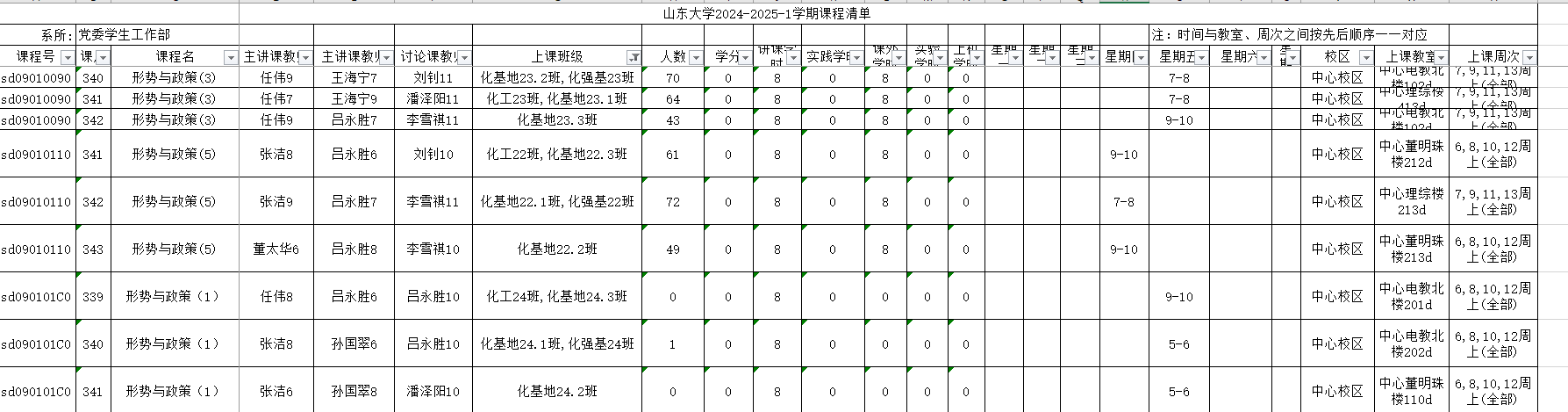 各班学习委员协调分组,选一名代表填写《分组情况表》,体现姓名、班级、学号,组内职务等信息,于10月24日前,将电子版发送至讨论课教师邮箱(吕永胜 lysheng@sdu.edu.cn;刘钊 liuzhao88@sdu.edu.cn;潘泽阳 hxyhgxypzy@sdu.edu.cn;李雪祺 lxq2022@sdu.edu.cn),请同学们务必确保加入讨论小组,以便取得讨论课成绩。