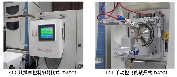 表面解吸常压化学电离源(DAPCI)是一种对表面痕量物质进行直接电离的化学电离源,具有比DESI更高的灵敏度。DAPCI-MS的主要特点:1)灵敏度高,选择性好,基体耐受性强;2)直接分析包括粉末在内的各种固体、液体样品;3)易于小型化,适宜与质谱、淌度谱等联用;4)可用空气或水蒸气为试剂,对样品表面无污染;5)对弱极性和非极性物质的检测能力较ESI/DESI高;6)可直接进行质谱成像,灵敏度高,准确度好。