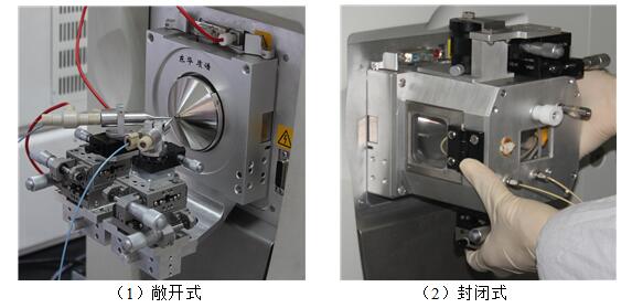 电喷雾萃取电离源(EESI)是一种较ESI更温和的软电离源,能将通过电喷雾制备的能荷载体携带的能量和电荷选择性地传递给分布在3-D空间的复杂样品中的目标分子,实现无需样品预处理的直接质谱分析。EESI-MS的显著优点:1)基体承受能力强,直接分析气、液、固、胶粘、粉末、冷冻等各种形态样品;2)灵敏度高,稳定性好;3)直接检测极性、非极性、挥发、非挥发性物质;4)可实现原位、活体、远距离和极限条件下复杂样品的直接质谱分析。